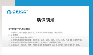 5、未經(jīng)許可的產(chǎn)品改裝或不按說明書操作,在非ORICO官網(wǎng)維修點(diǎn)維修;