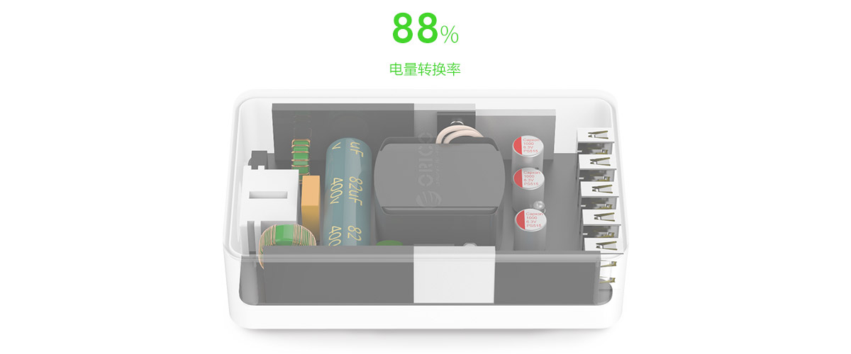 40W大功率輸出以確保五臺設備全速充電,單口可達2.4A電流輸出,實現多設備同時充電。