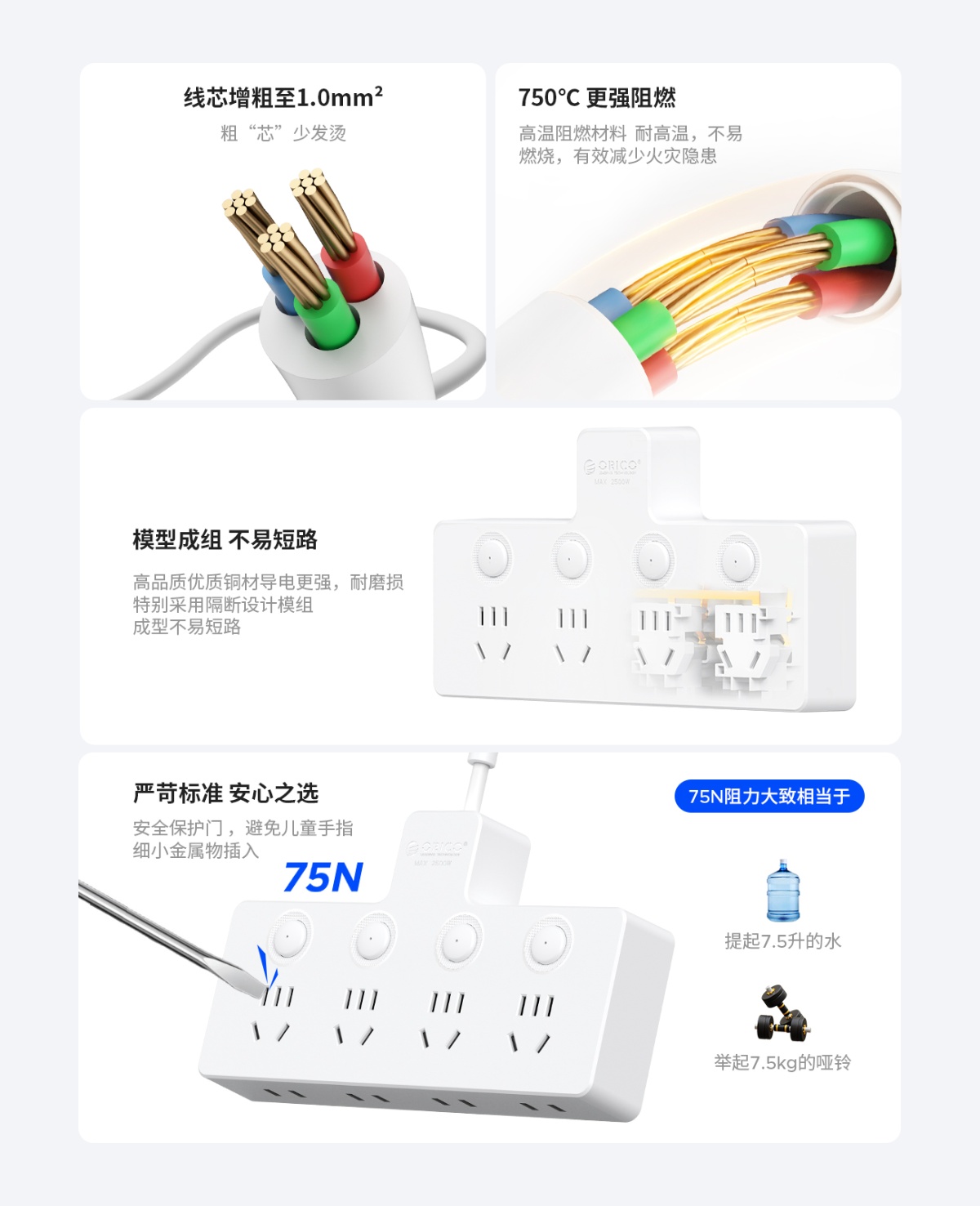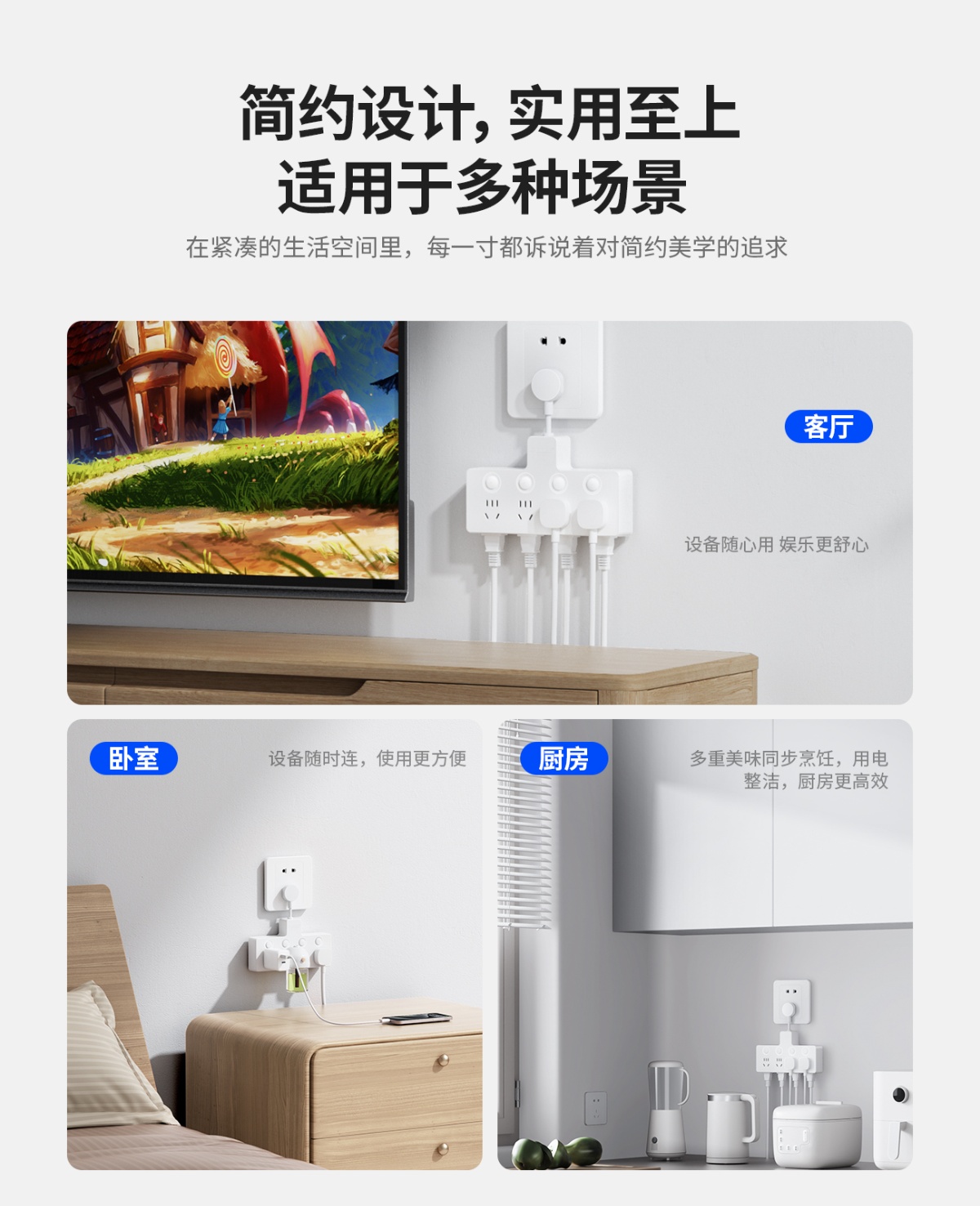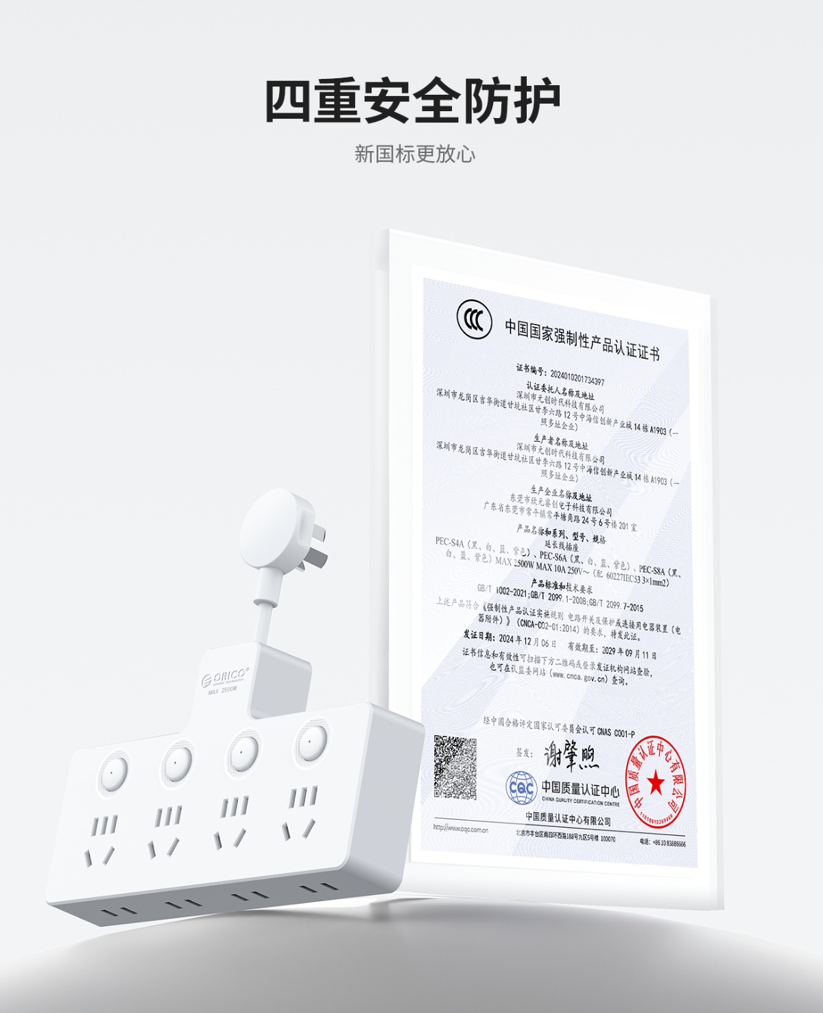 新國(guó)標(biāo)3C認(rèn)證6孔分控排插