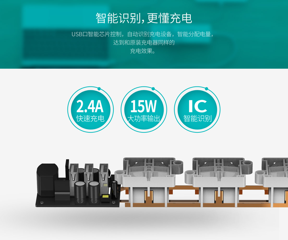 新國標便攜桌面式排插,雙極門獨立開關,2500W大功率