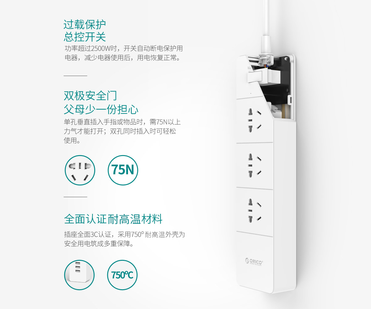 便攜桌面式排插 4口USB+3A接口 750℃耐高溫 單口支持2.4A
