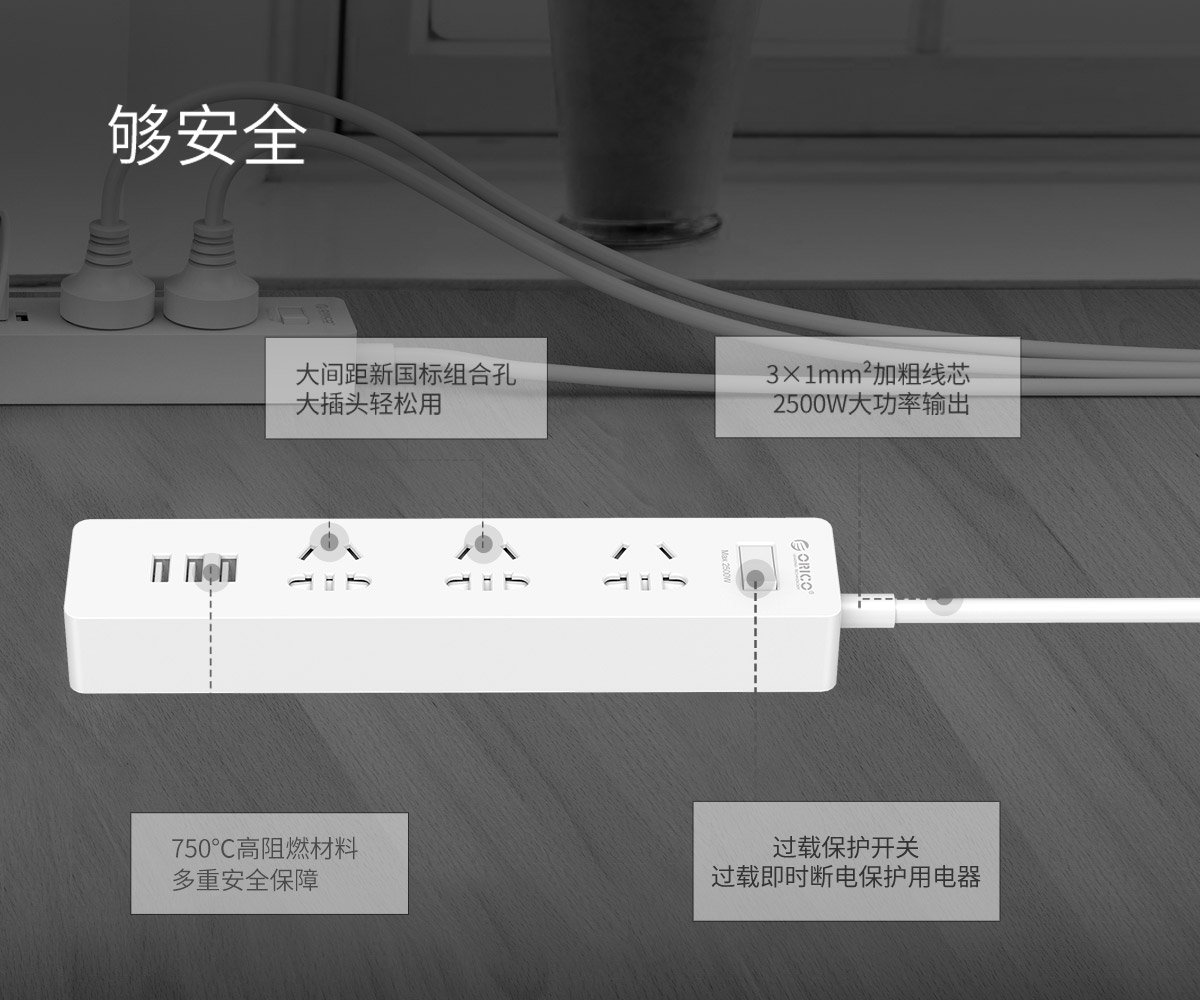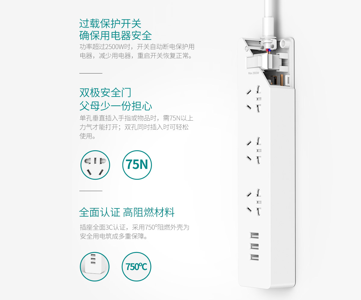 3A3U新國標排插 雙極安全門 750℃耐高溫