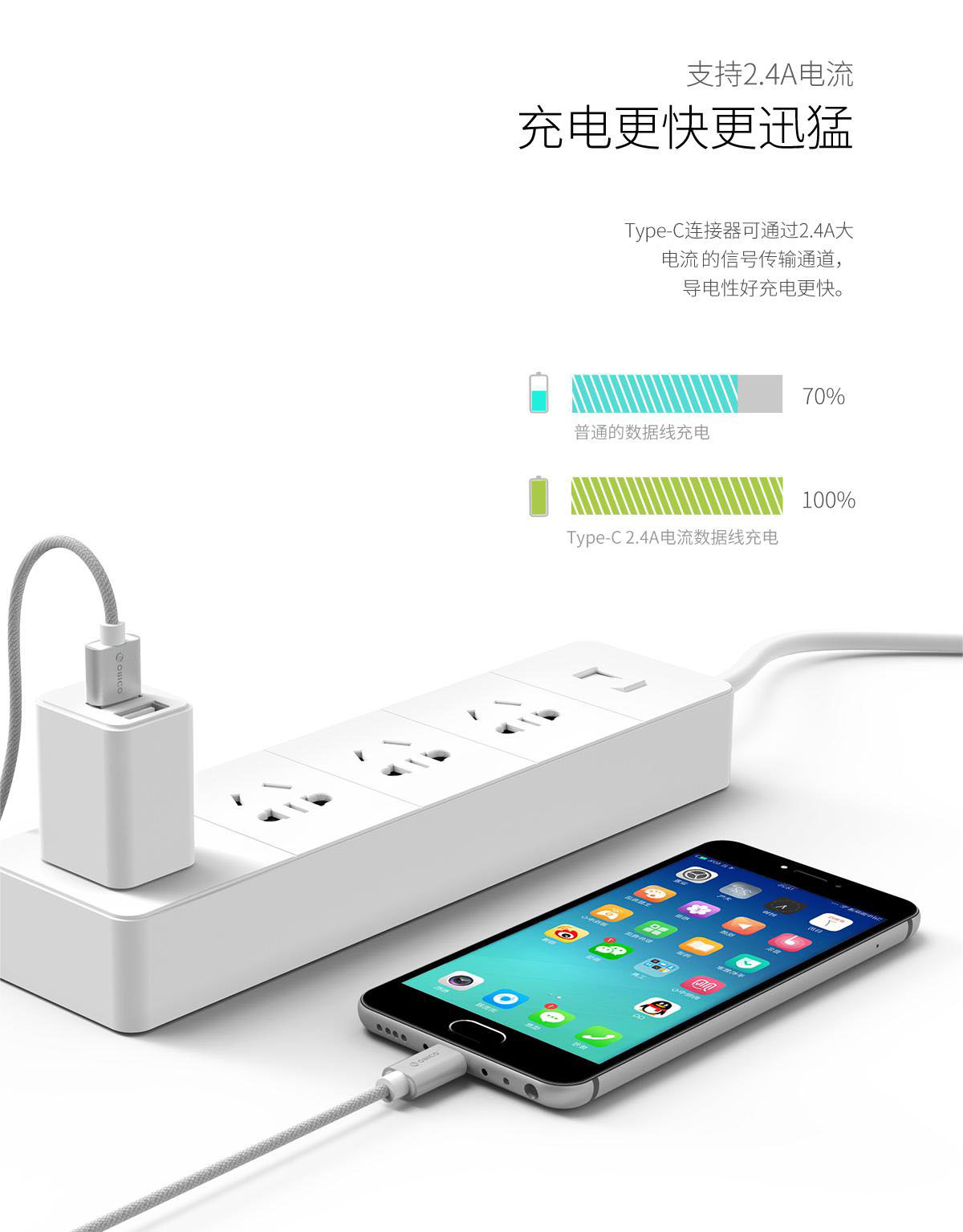 Type-C連接器可通過2.4A大電流的信號傳輸通道,導電性好充電更快。
