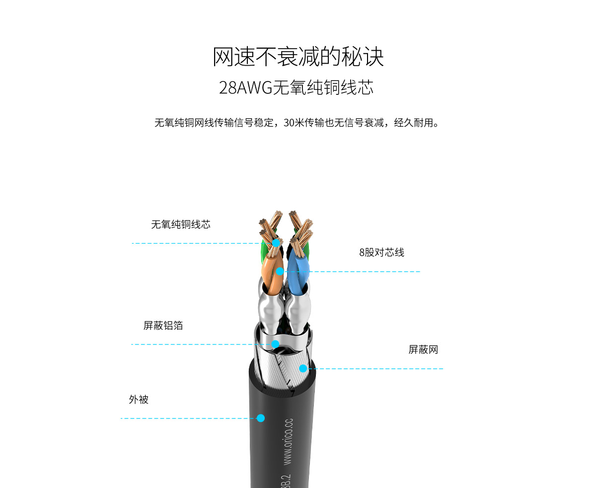 萬兆帶寬,純銅線芯,8芯雙絞,PVC材質,金屬水晶接口