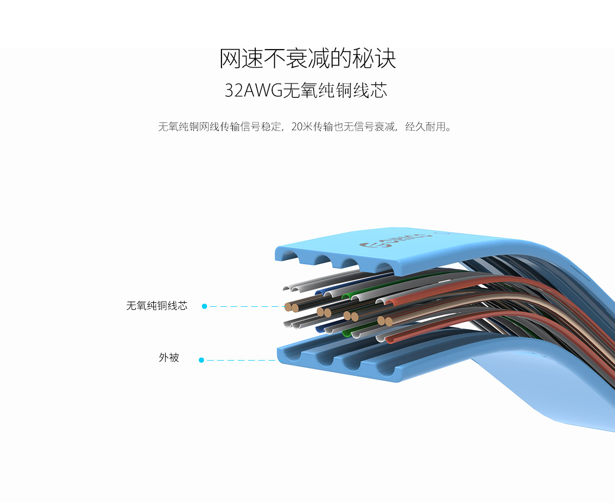 萬兆帶寬 純銅線芯 8芯雙絞 PVC材質 金屬水晶接口