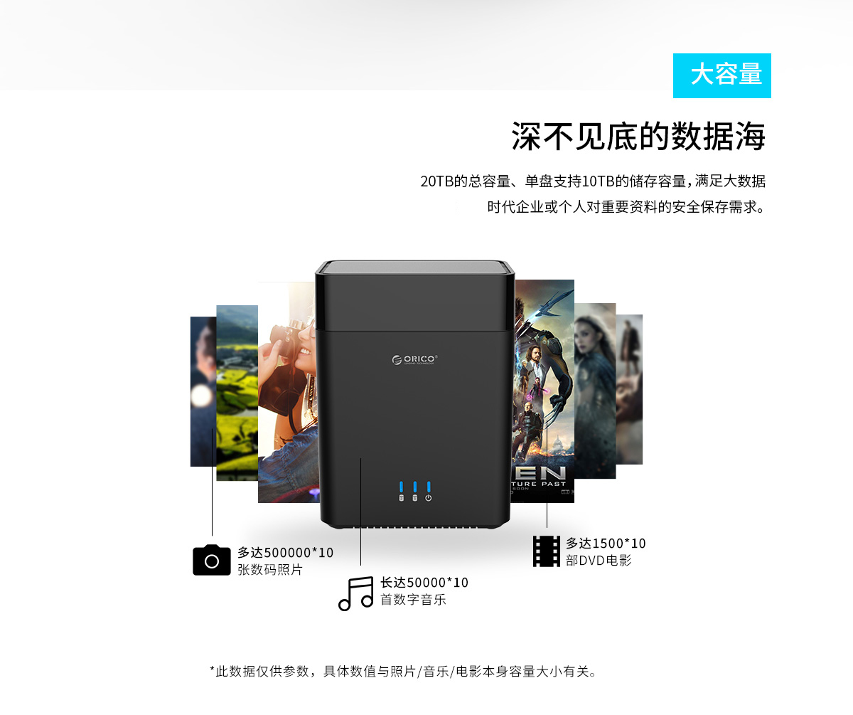 八芯磁吸,3秒拆裝,單盤支持10TB,即插即用,智能休眠,節(jié)能環(huán)保,靜音風(fēng)扇及蜂窩孔散熱,支持UASP協(xié)議。