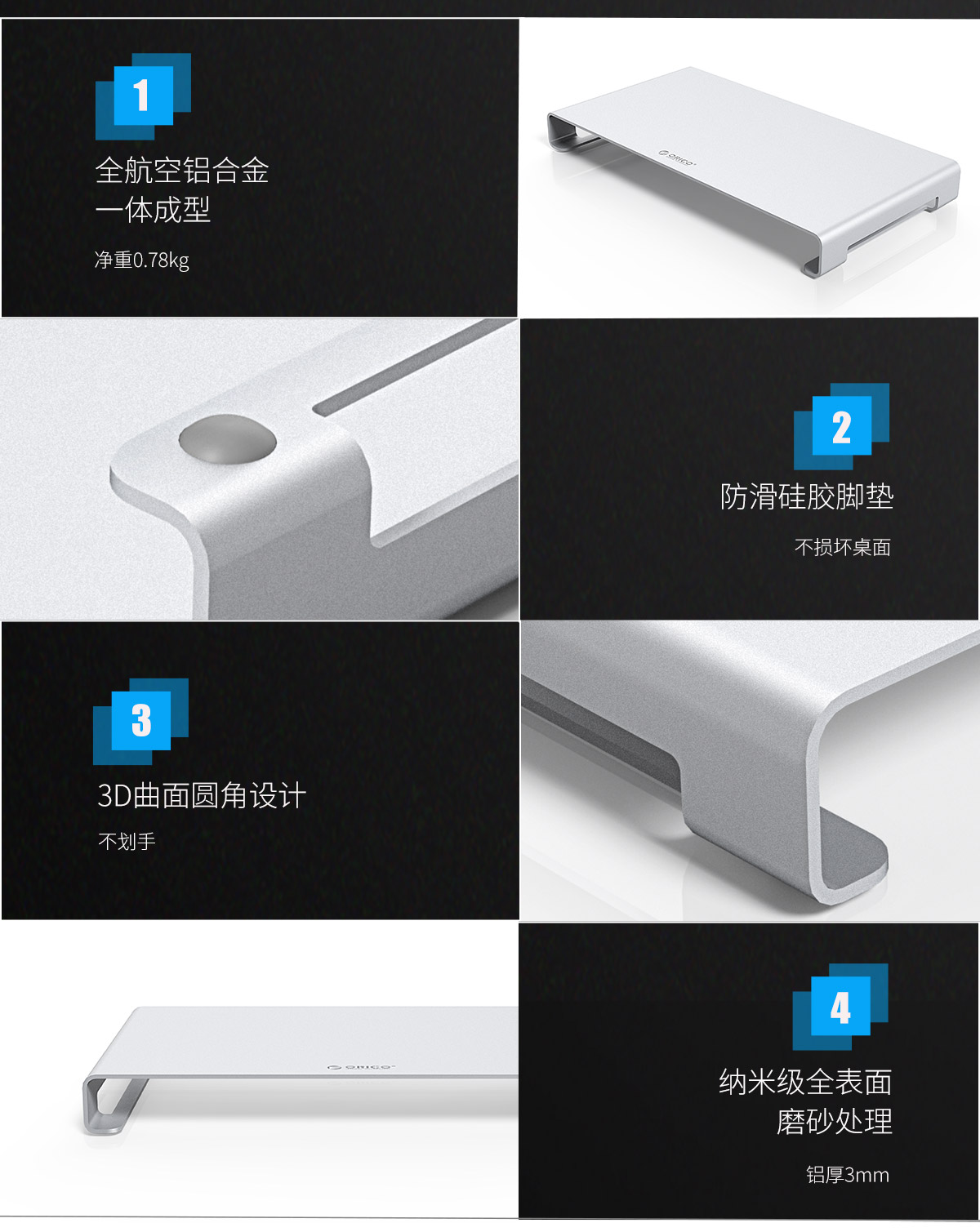 鋁合金一體成型,防滑硅膠腳墊,3D曲面圓角,表面磨砂處理