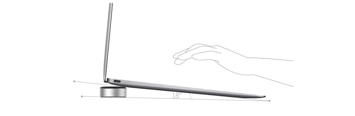 傾斜設(shè)計(jì),不僅讓您擁有健康的瀏覽視角,同時(shí)通過(guò)增加筆記本底部的空氣流通空間,有效改善氣流,有助于散熱系統(tǒng)的運(yùn)作,配合鋁合金設(shè)計(jì)更可以進(jìn)一步提高您Macbook/ipad的散熱效率。