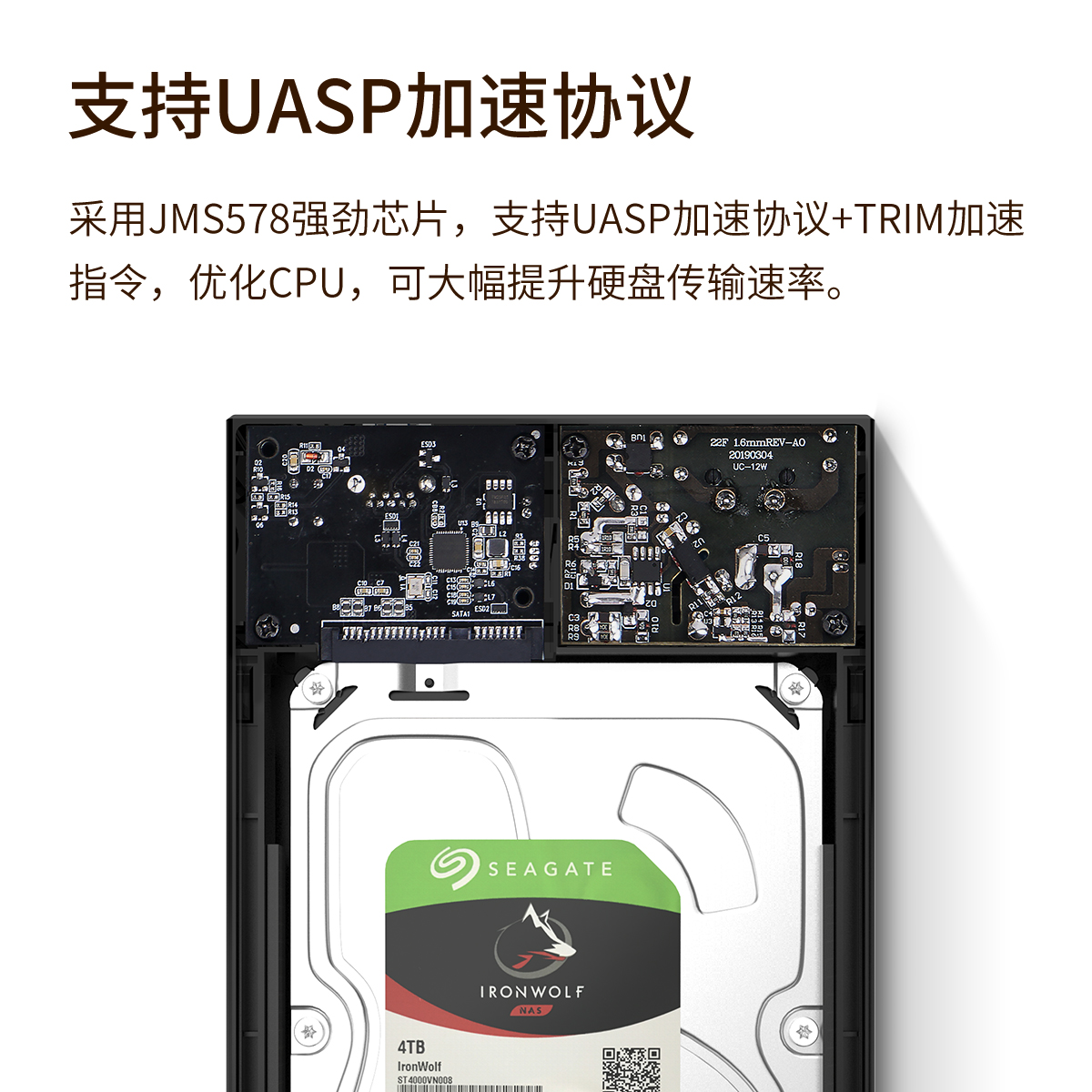 12W內(nèi)置電源,支持16TB大容量,JMS578強(qiáng)勁芯片,支持uasp加速協(xié)議