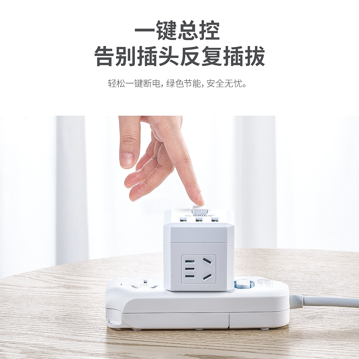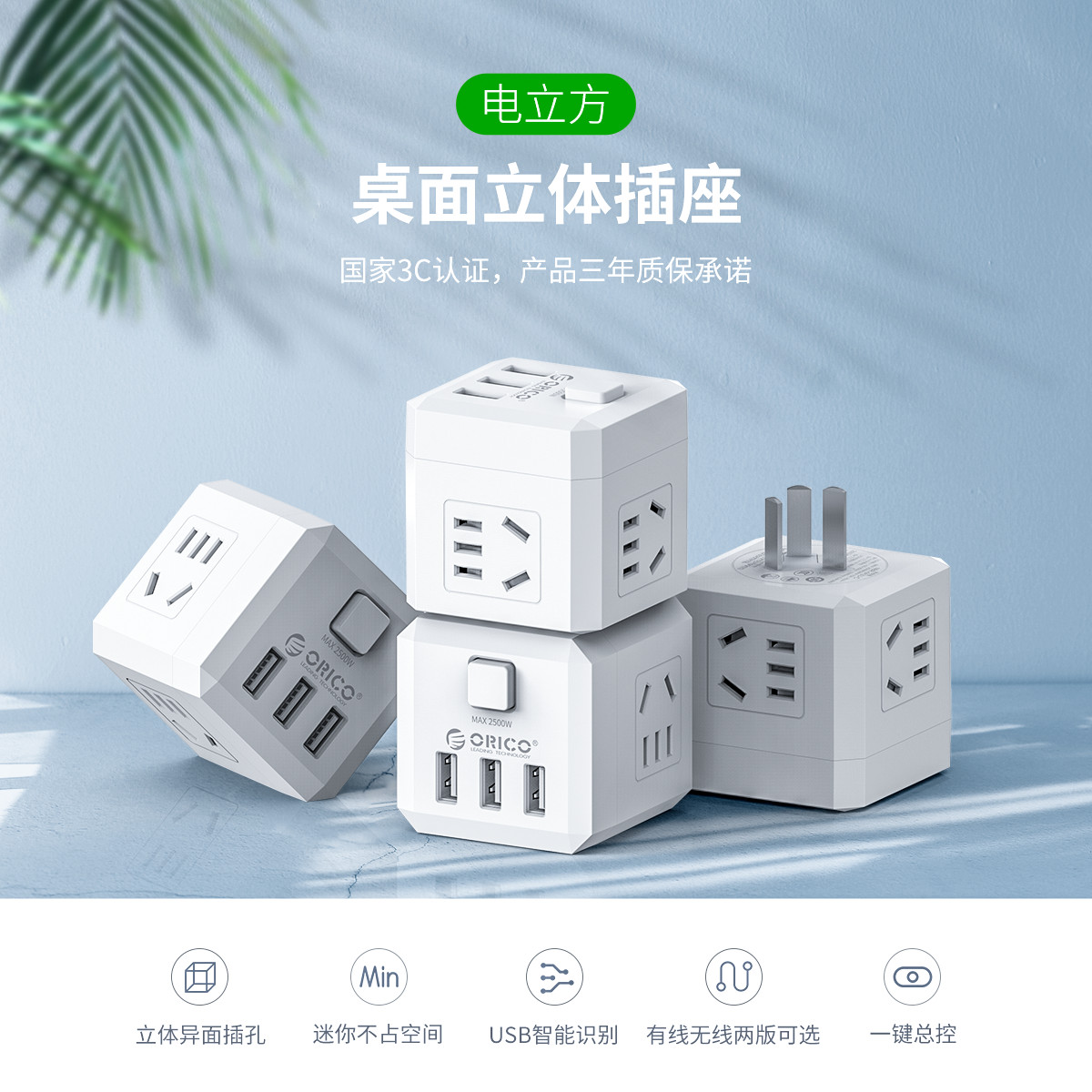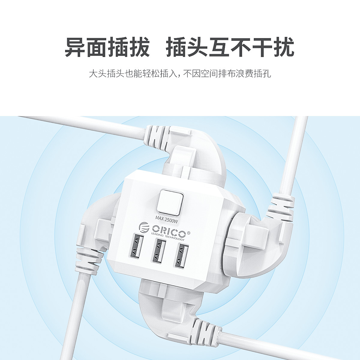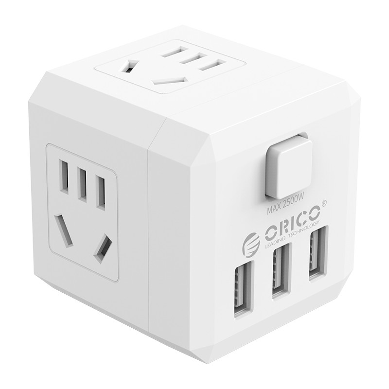 電立方2500W大功率4 AC口+3 USB排插(帶總控開關)