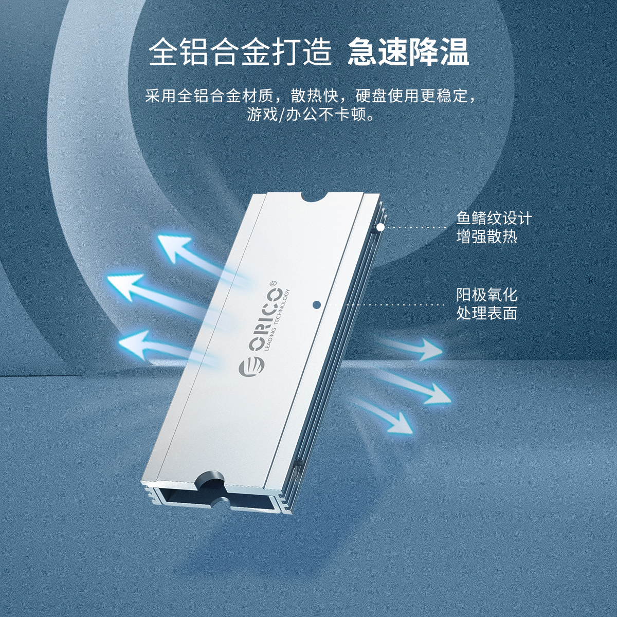 全鋁材質,快速導熱,魚鰭紋設計加帶導熱硅膠,高效散熱,三色金屬風,任你選擇。