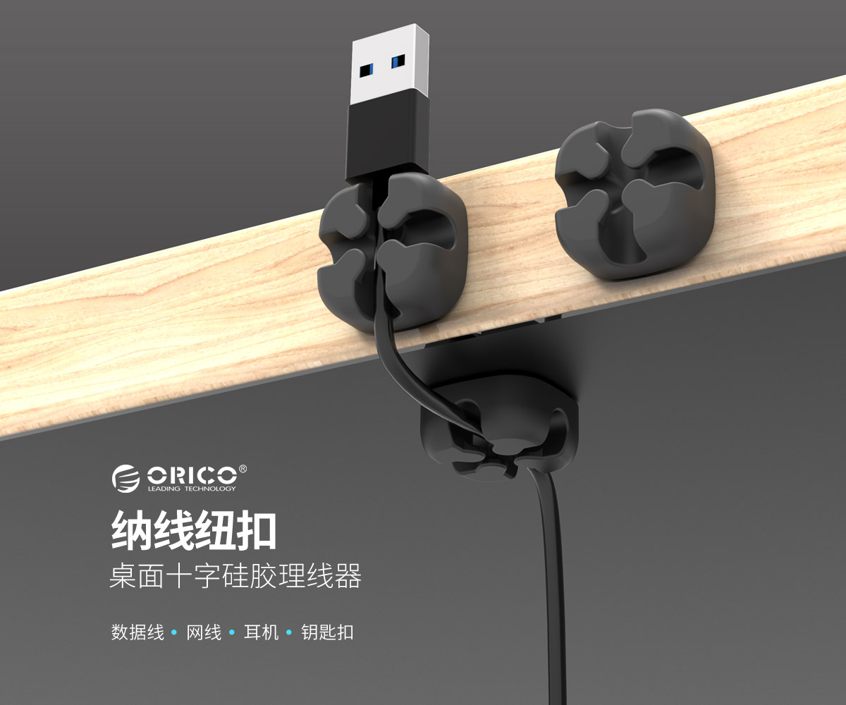 桌面理線器,十字卡槽,軟質(zhì)硅膠,3M強(qiáng)力雙面膠,五色可選