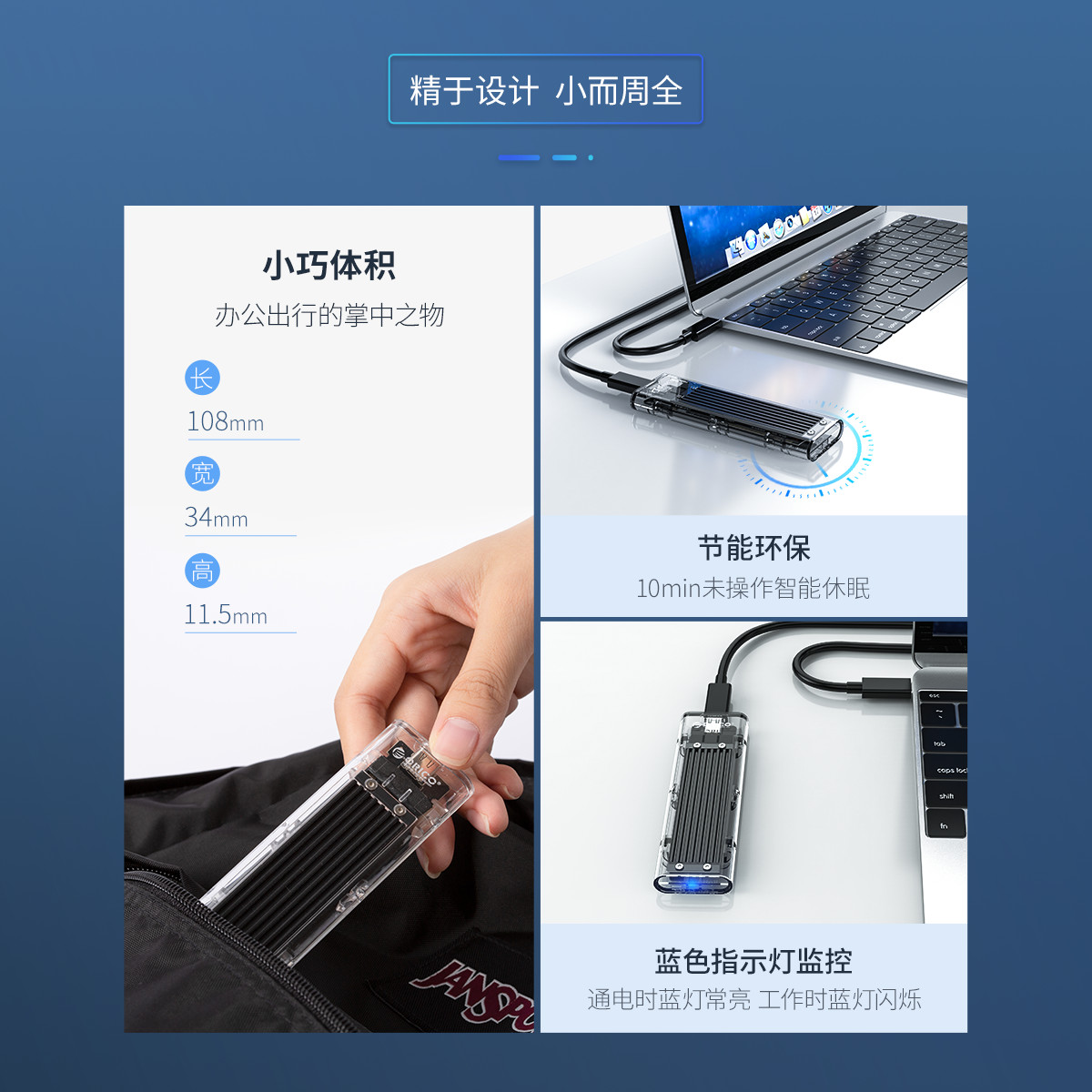 NGFF M.2透明硬盤盒,免工具Type-C接口透明硬盤盒