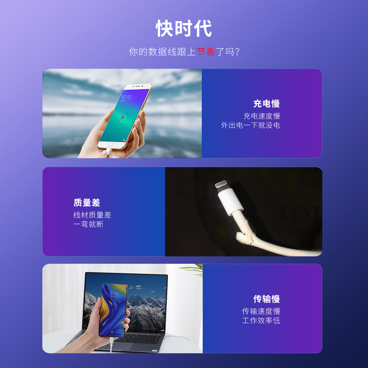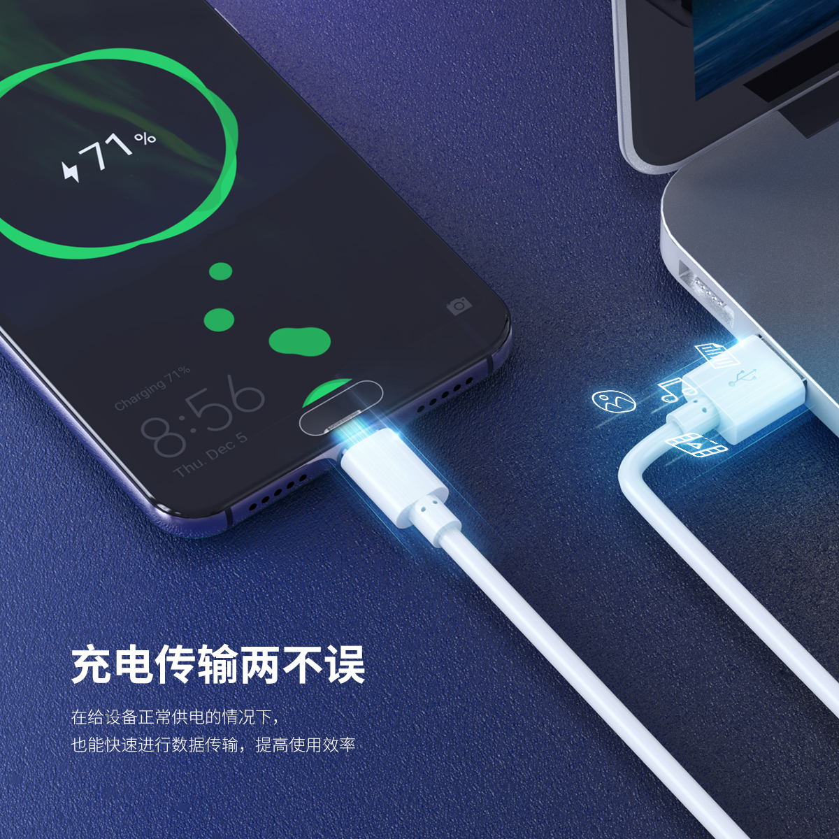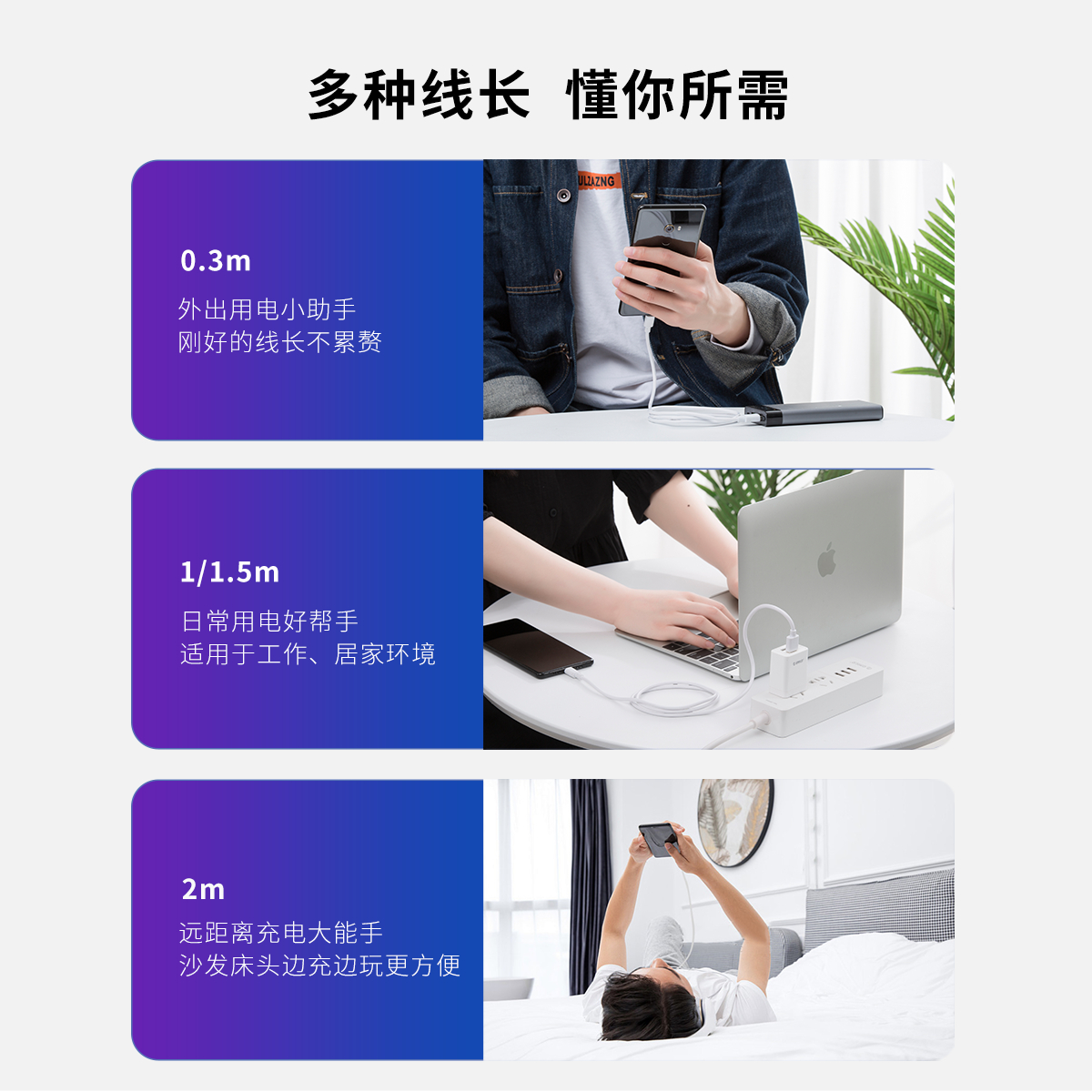 充電傳輸兩不誤,耐插拔,接頭加固,經久耐用,多種線長
