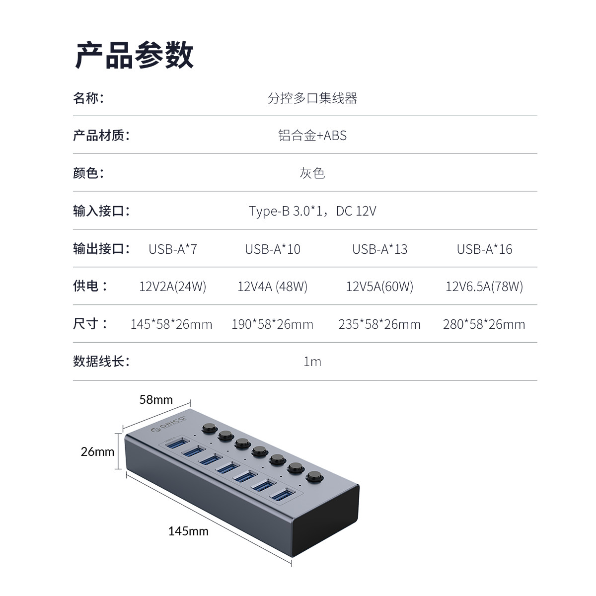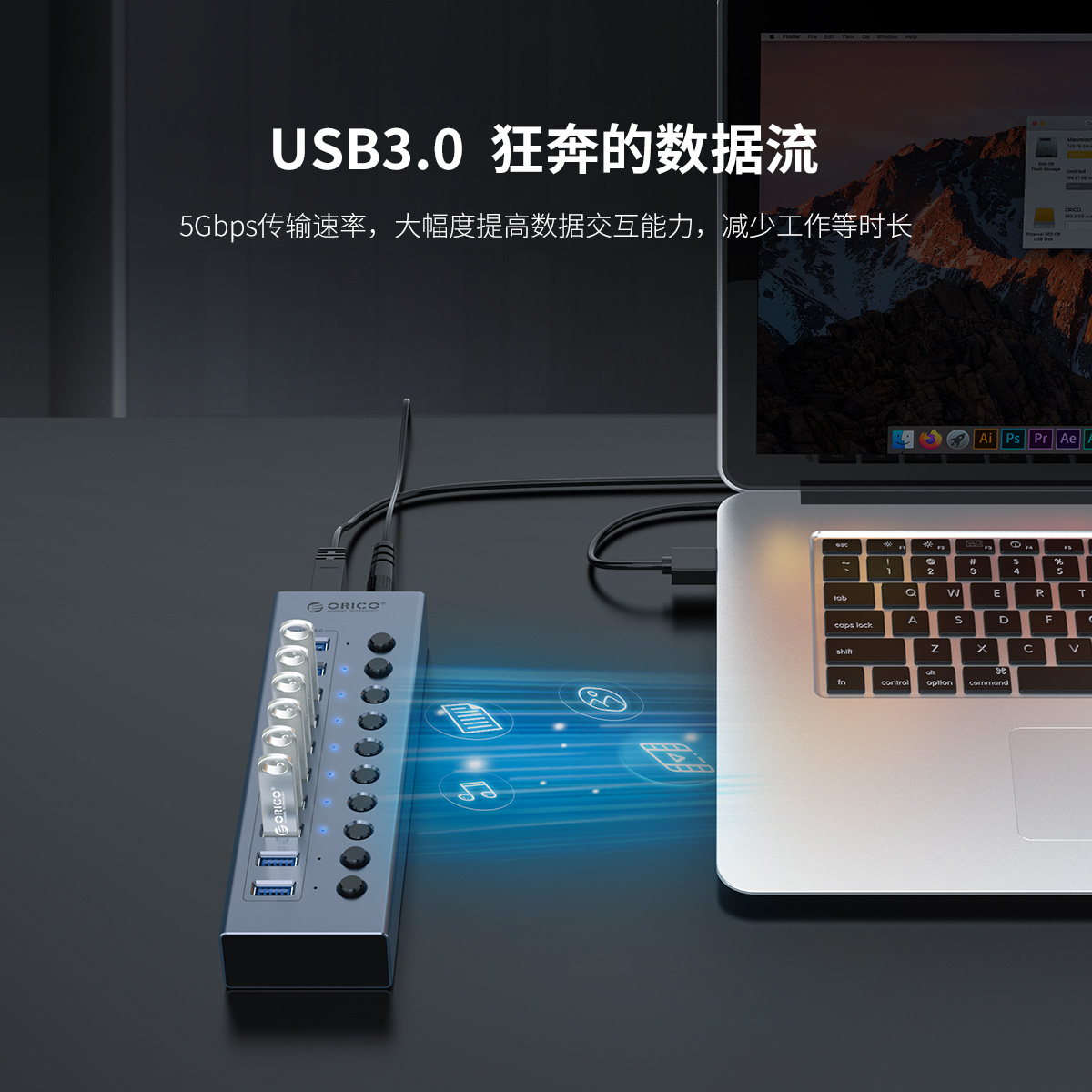 工業(yè)級USB3.0,鋁合金分控,5Gbps,2.4A電流