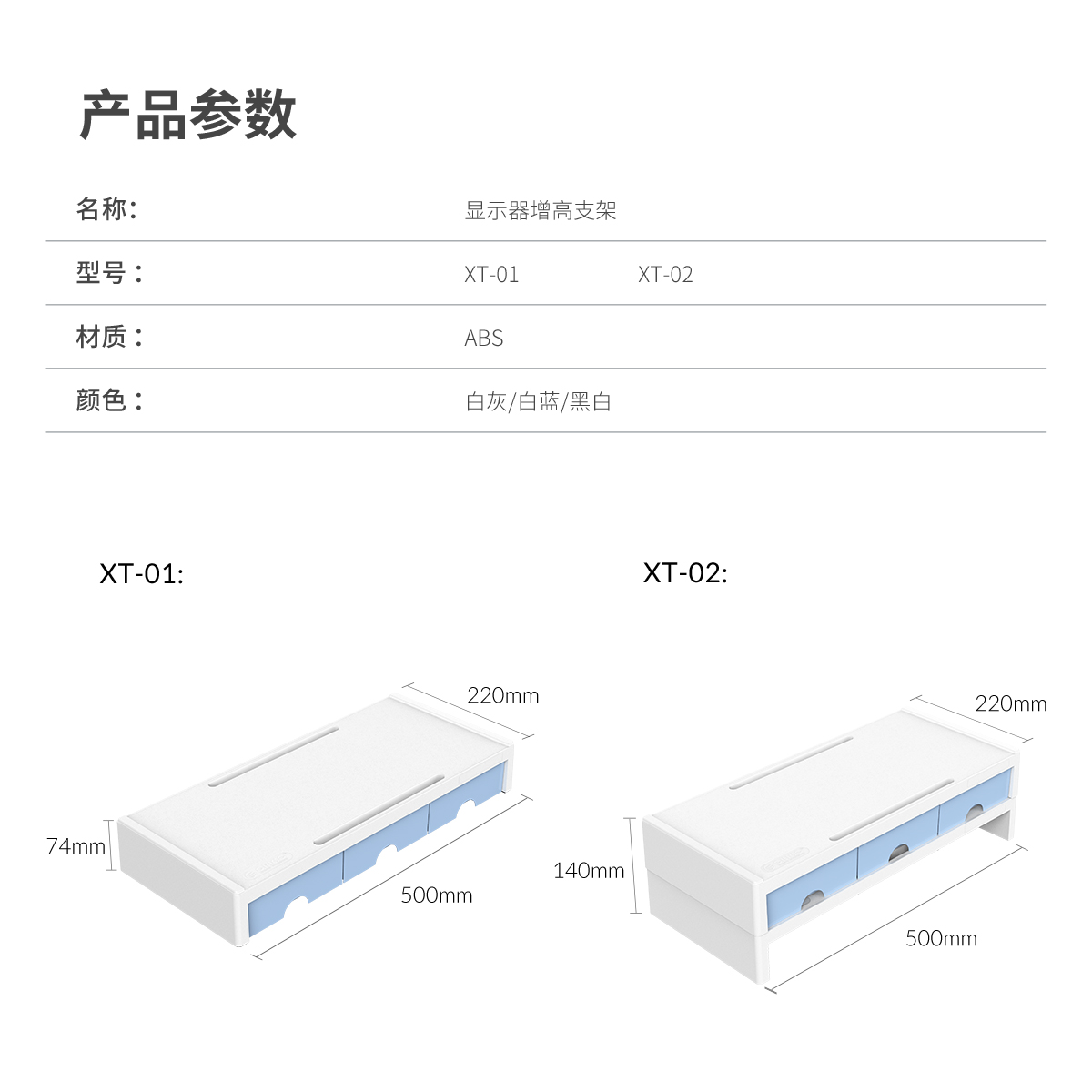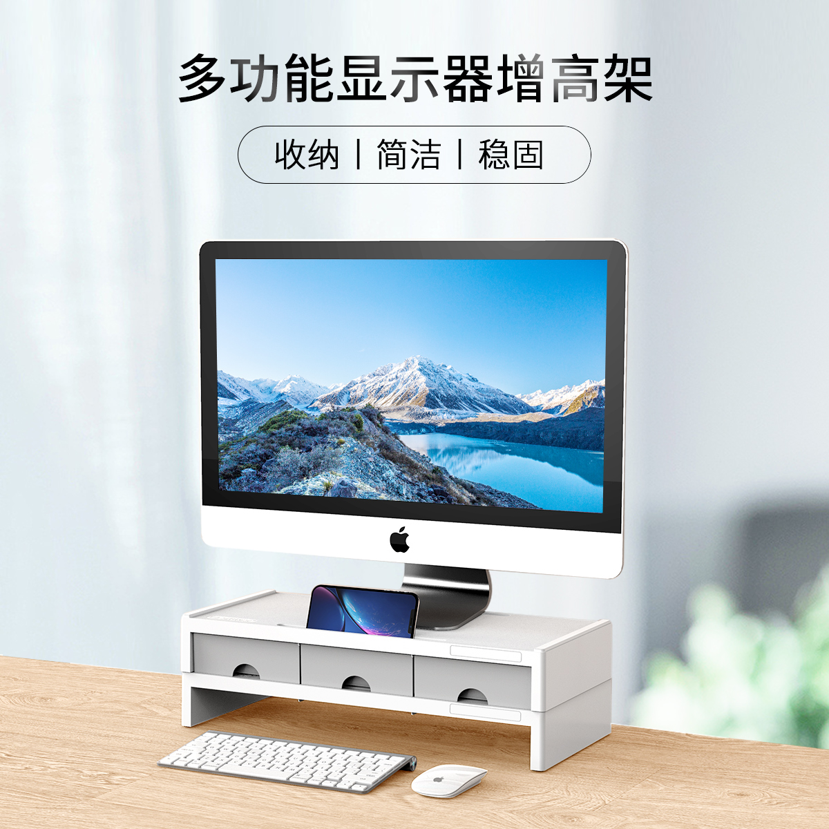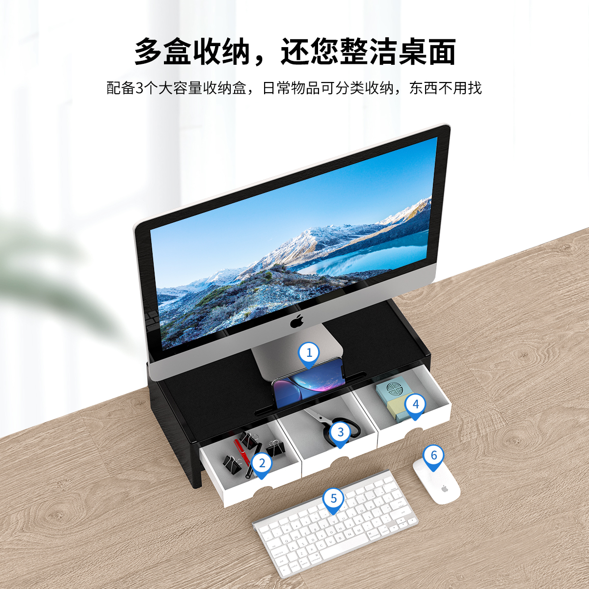多功能顯示器增高架,配備3個大容量收納盒,日常物品可分類收納,采用厚實ABS材質打造