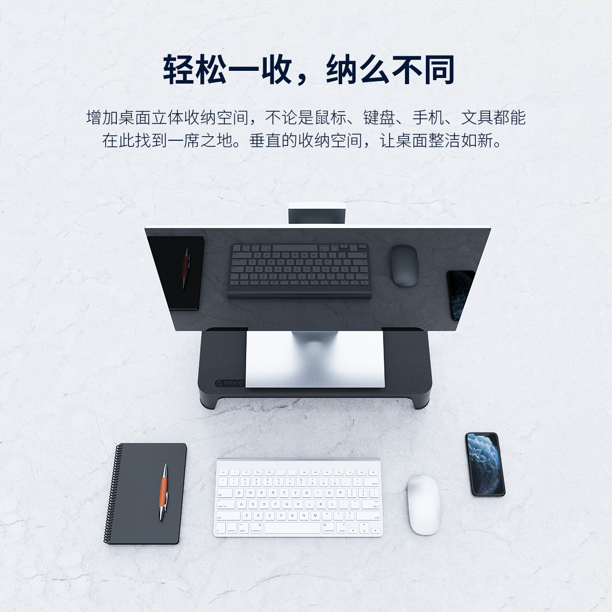 收納鍵鼠|簡(jiǎn)約大氣|穩(wěn)固支撐 顯示器抬高8CM 厚實(shí)的ABS材質(zhì)打造