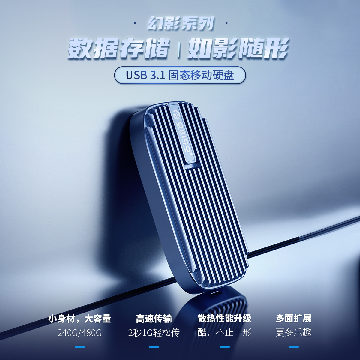 USB 3.1固態移動硬盤,OTG功能,支持UASP加速協議,52OMB/s強勁動力,配有一條CTOA和C TOC二合一數據線,