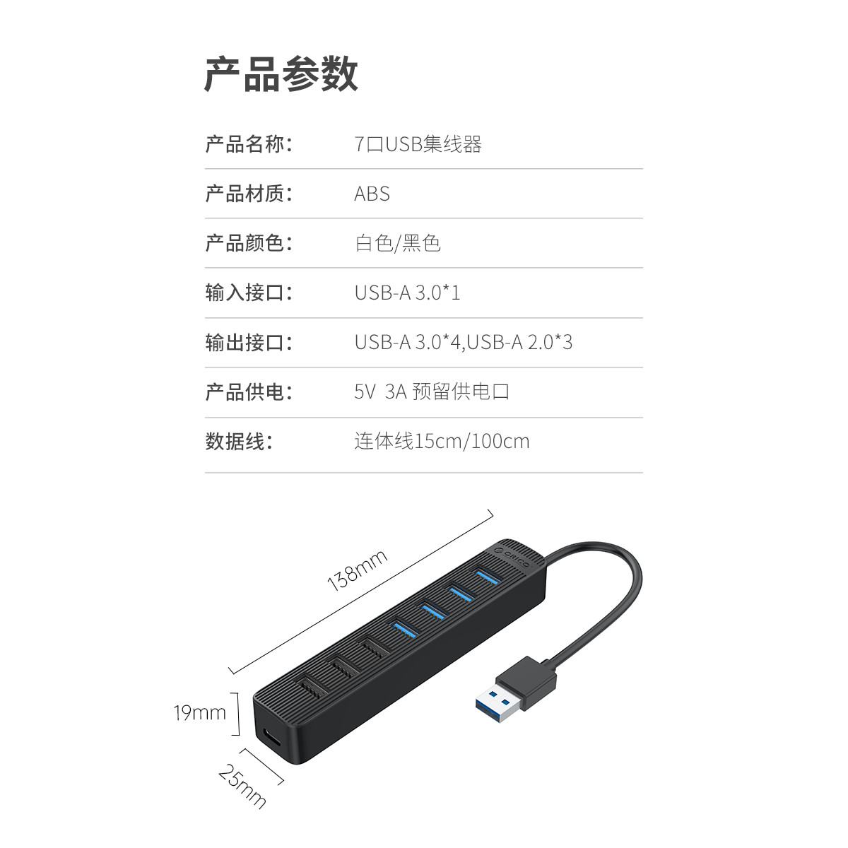 4個USB3.0+3個USB2.0接口,預留10W Type C供電口,可外接電源,防倒流設計