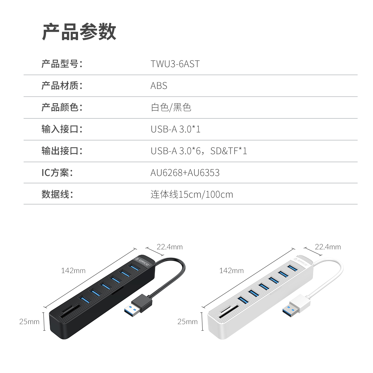 支持同時擴展6個USB,設備又能讀取SD/TF卡,5Gbps傳輸速率,支持2T大容量存儲卡、移動硬盤使用