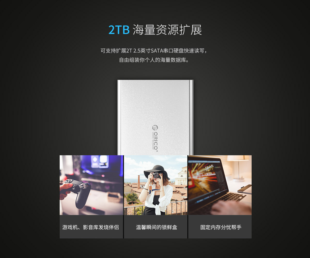 2.5英寸鋁合金USB3.0移動硬盤盒,支持2TB容量