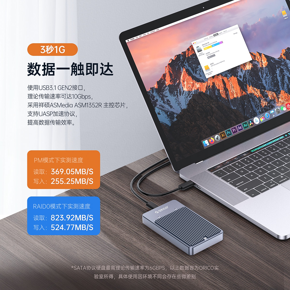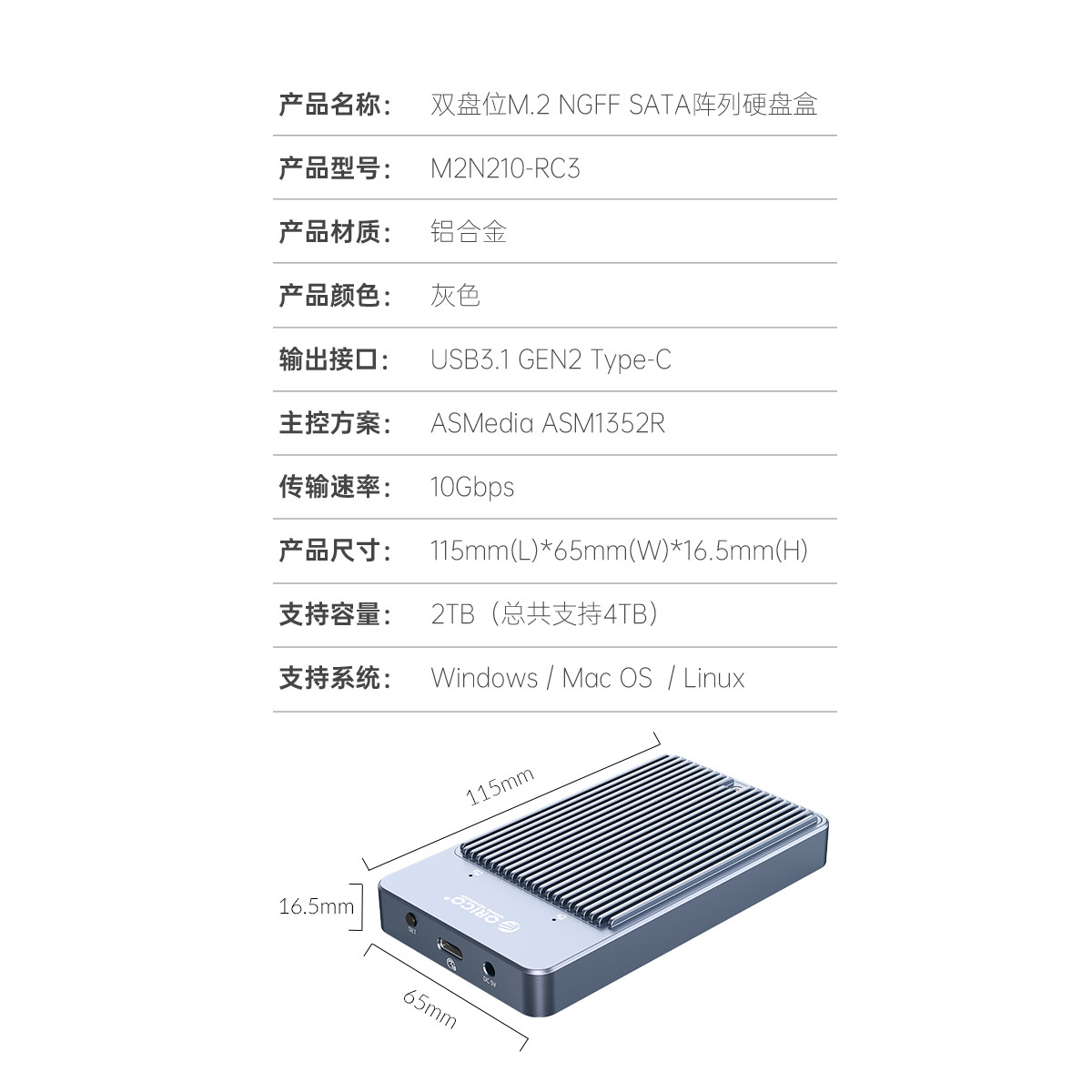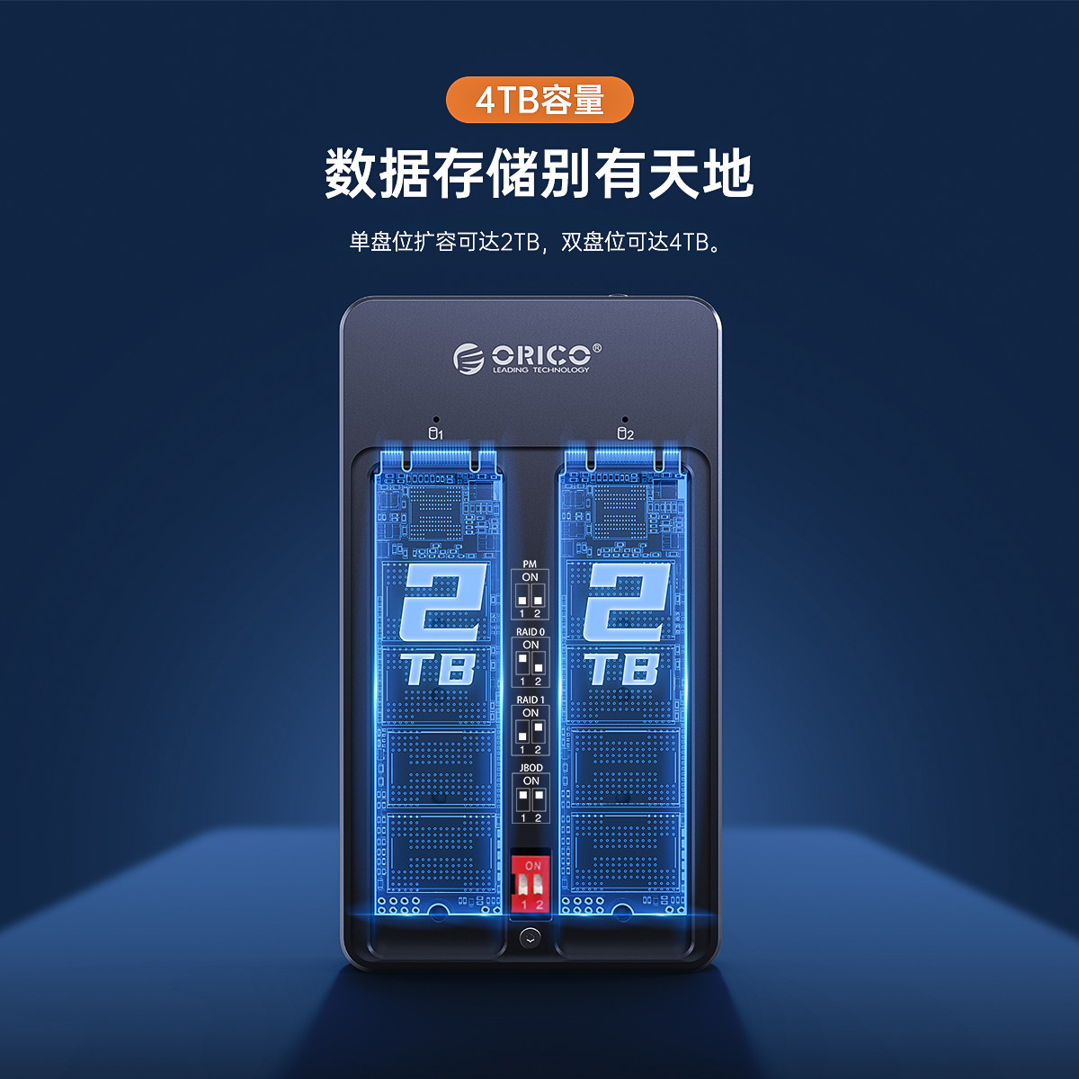 雙盤位M.2 NGFF SATA SSD陣列硬盤盒