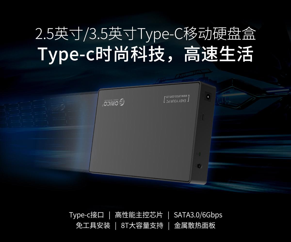 2.5英寸/3.5英寸通用Type-C移動硬盤盒,支持8TB硬盤