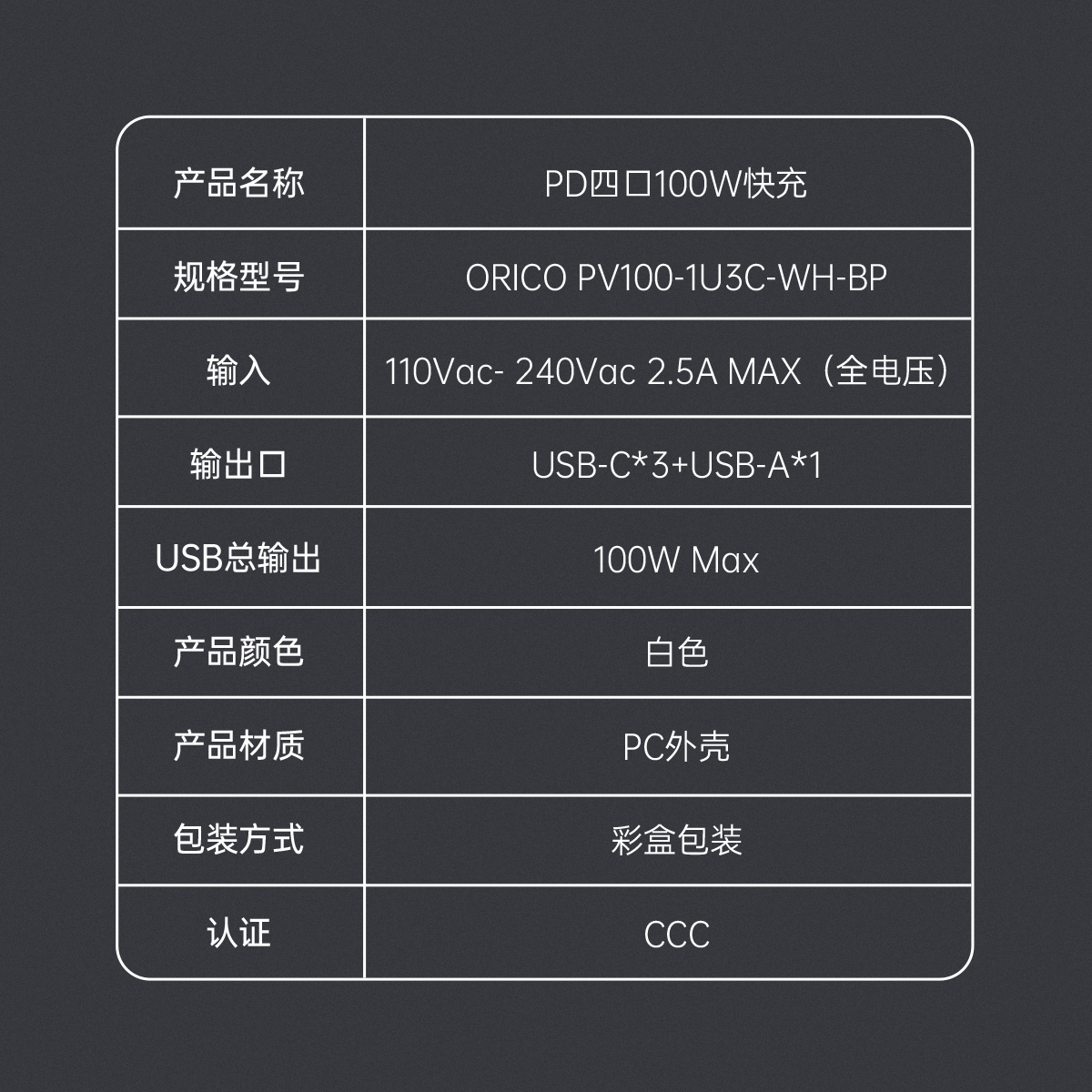 C1 100W PD(5V/3A, 9V/3A, 12V/3A, 15V/3A, 20V/5A,);