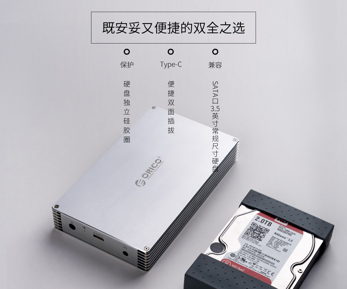 3.5英寸鏤空硬盤盒,micro B接口,單盤支持2TB容量,DIY硬盤盒