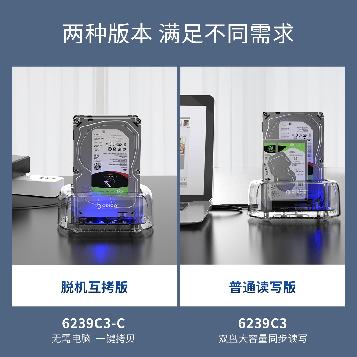 透明系列3.5英寸雙盤位Type-C硬盤底座