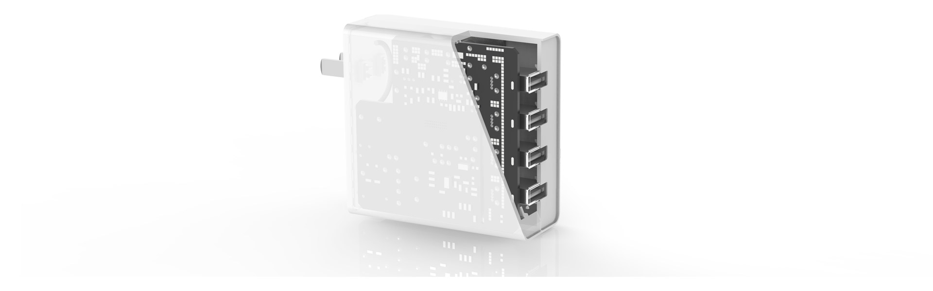 一臺手機、一臺平板、一個移動電源已成為大部分人桌面上的必備產品,DCW-4U配備4個USB輸出接口,日常使用足夠應對。單口智能輸出5V2.4A,更多設備,更多同行小伙伴均能兼顧。