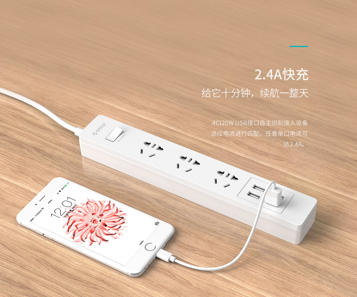 新國標,單口智能識別5V2.4A,總輸出5V4A 20W