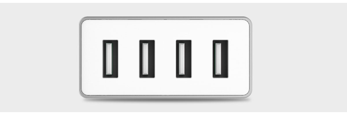 人性化配備四口USB設(shè)計,每一個USB接口都相當(dāng)于一個穩(wěn)定的充電器,一體輸出多口共享,為多設(shè)備日常充電需求提供一站式解決方案,同時解放出你的插排插口,滿足其他電器的需求。
