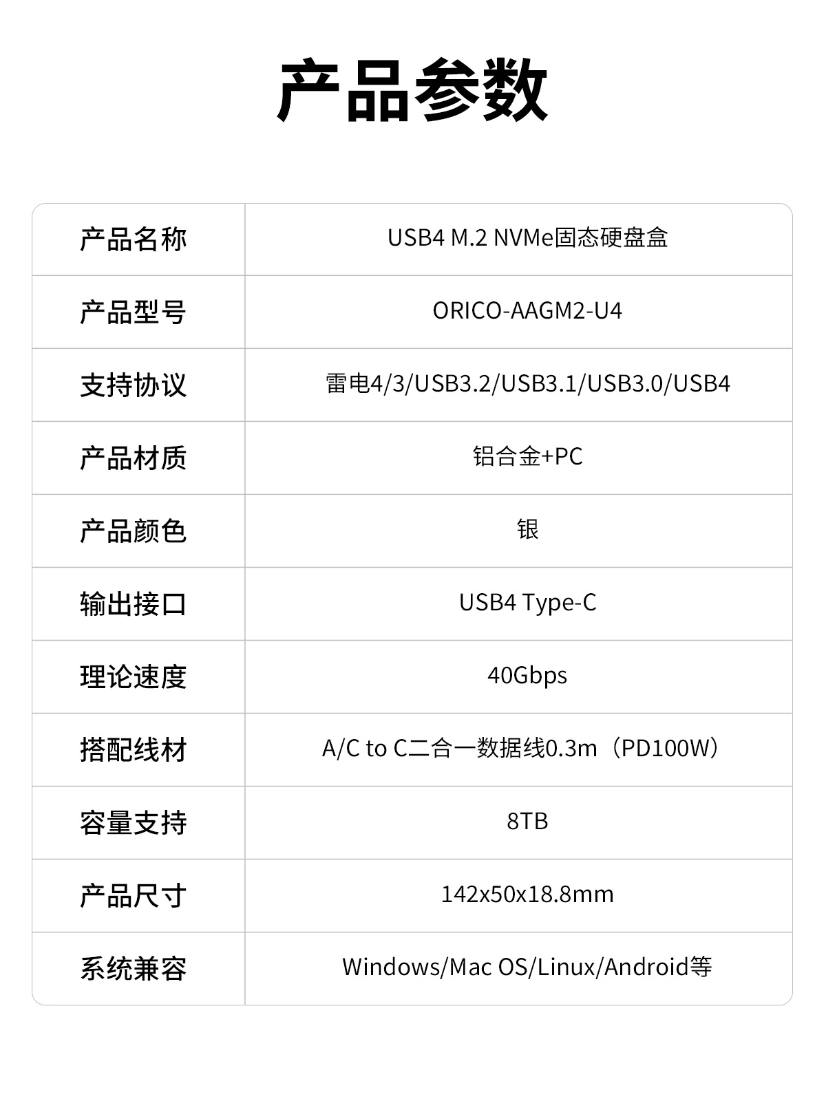 USB4透明鋁晶40Gbps M.2硬盤盒