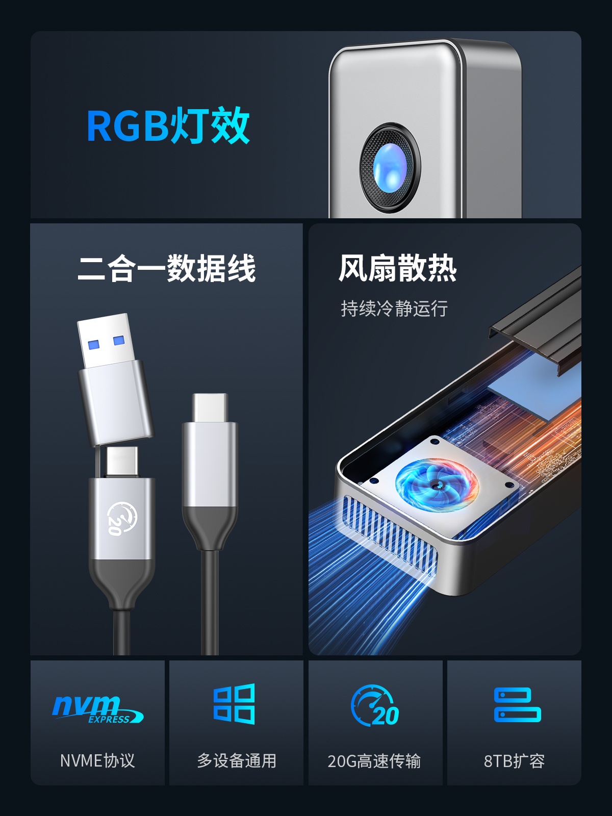 RGB M.2 NVMe 20Gbps硬盤(pán)盒