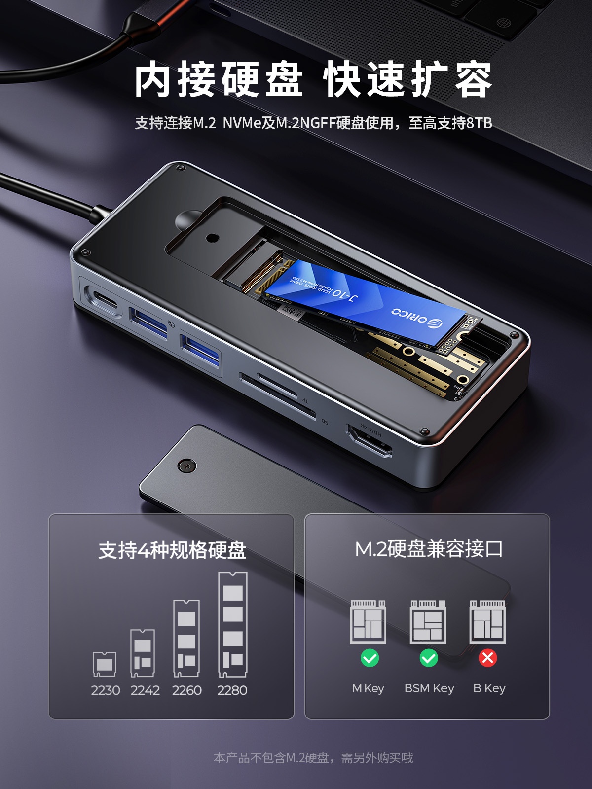 便攜式M.2硬盤擴(kuò)展塢 帶網(wǎng)口