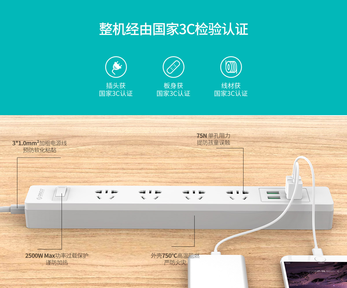 新國標(biāo)4AC口4usb口便攜桌面式排插