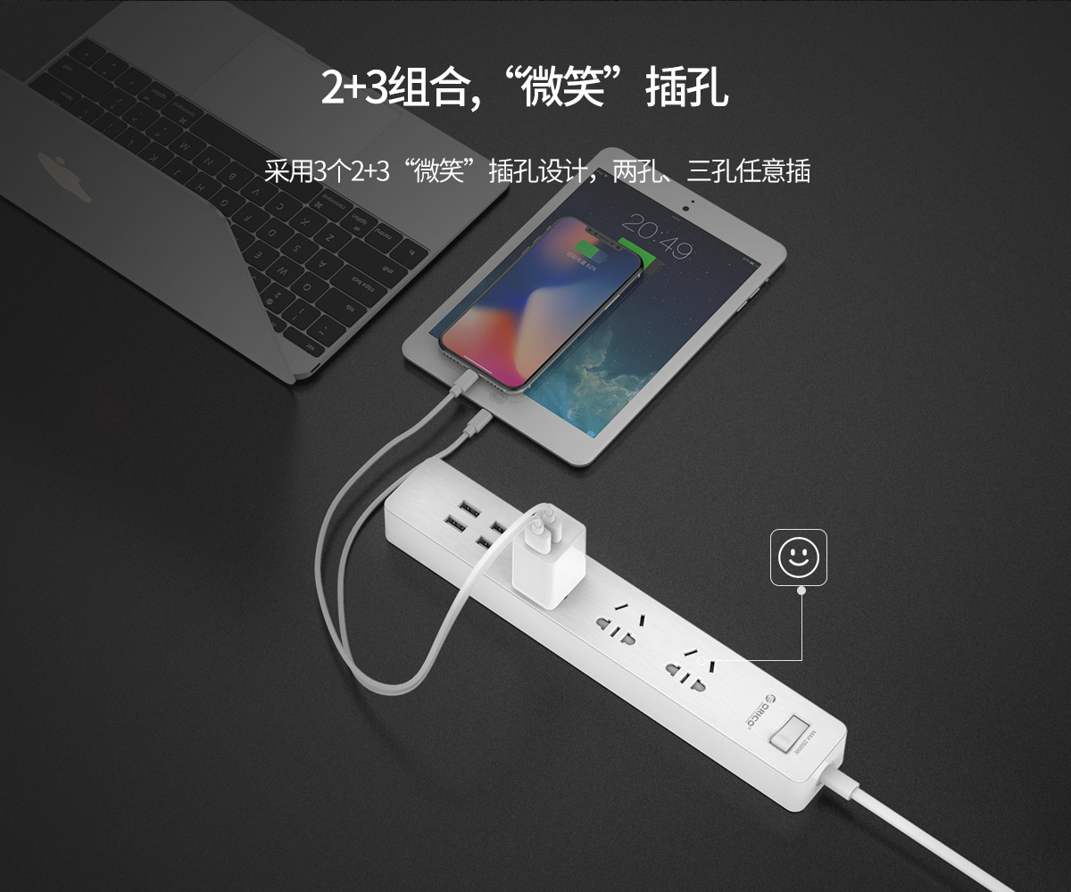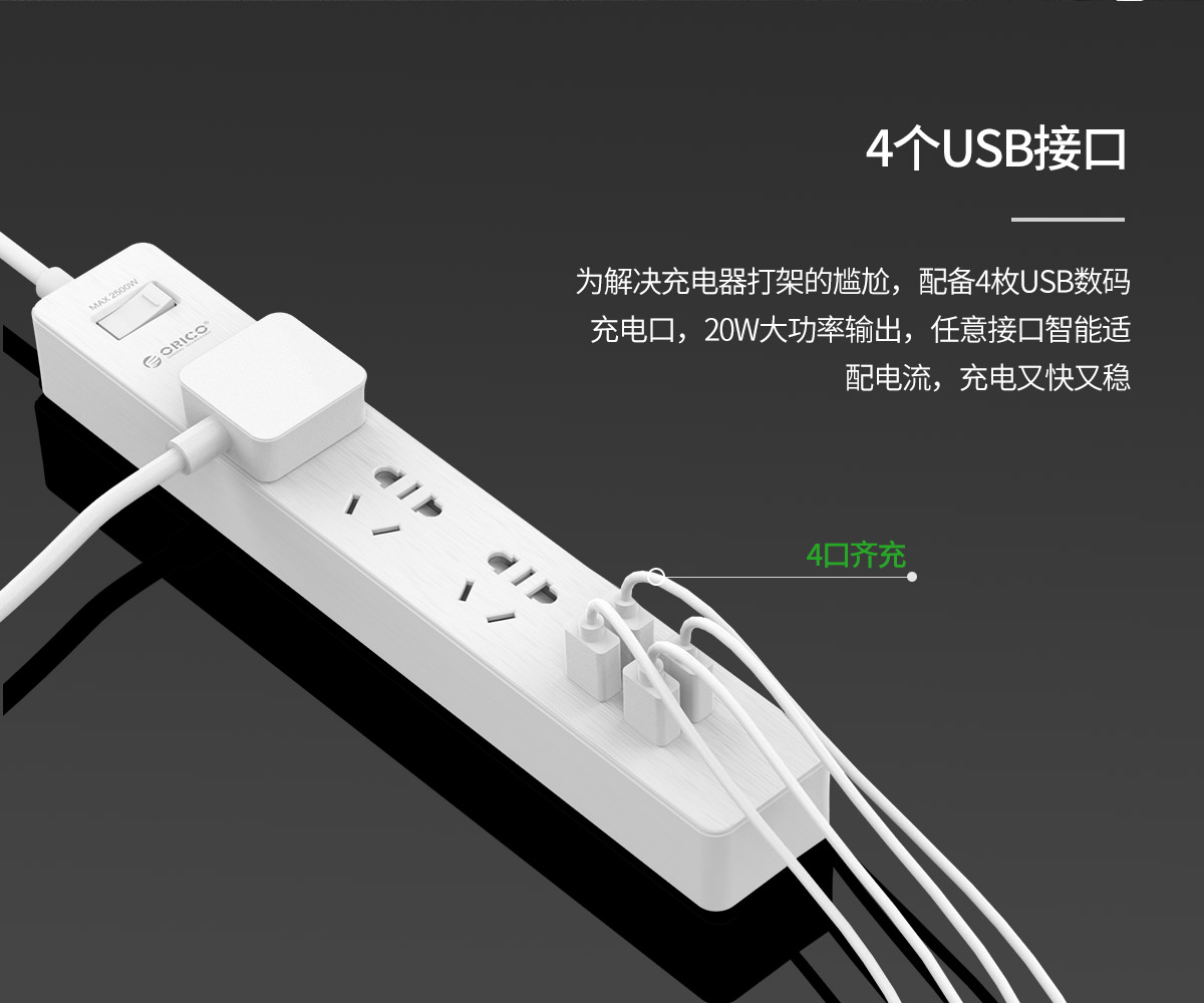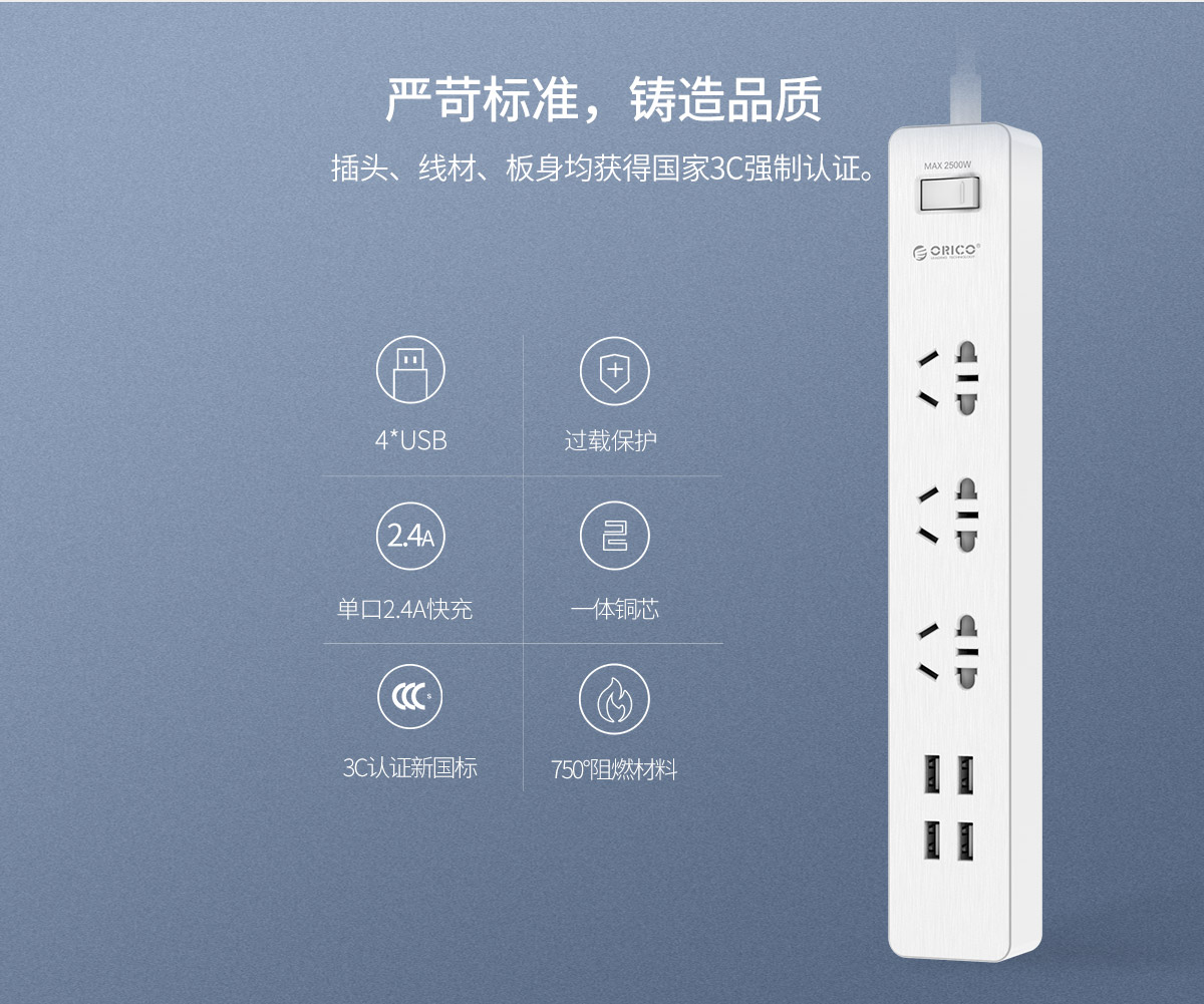 木紋新國標(biāo)3AC口4usb口智能桌面USB插線板