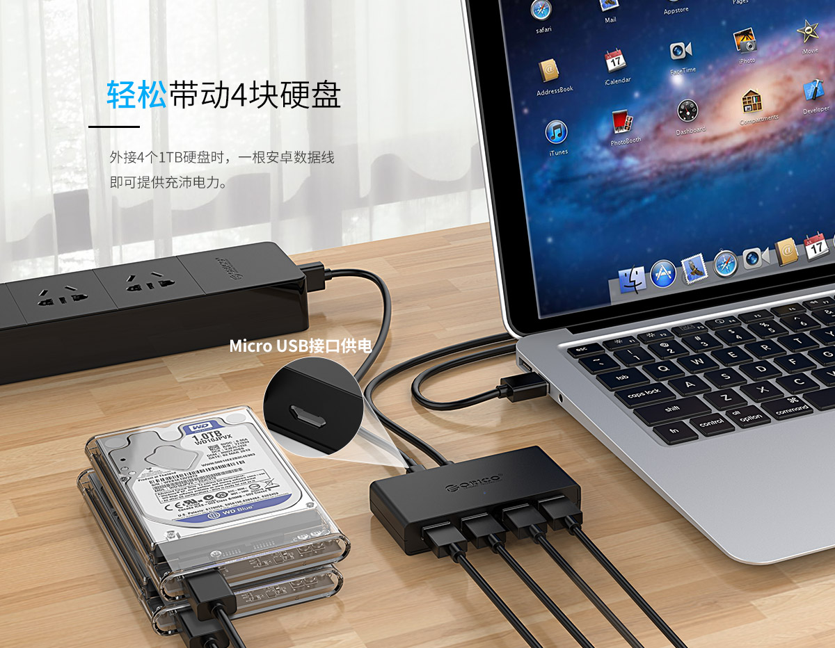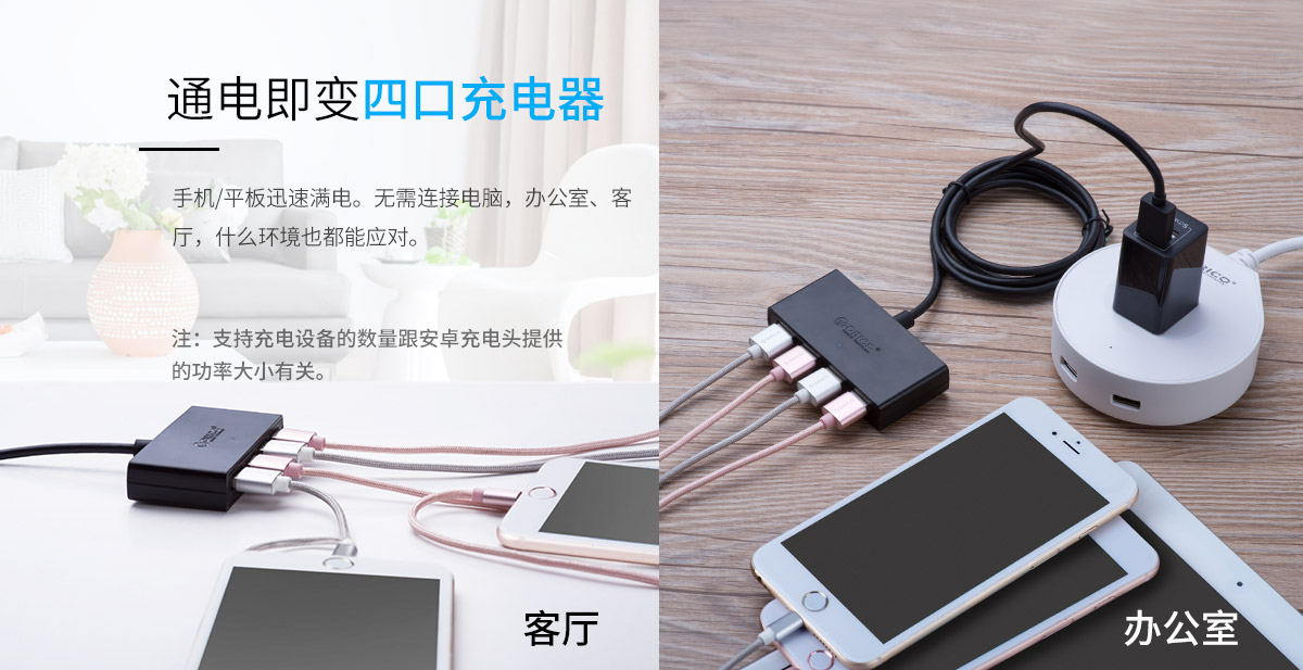 連體設計 多線長可選 藍色LED指示燈 多口集線器