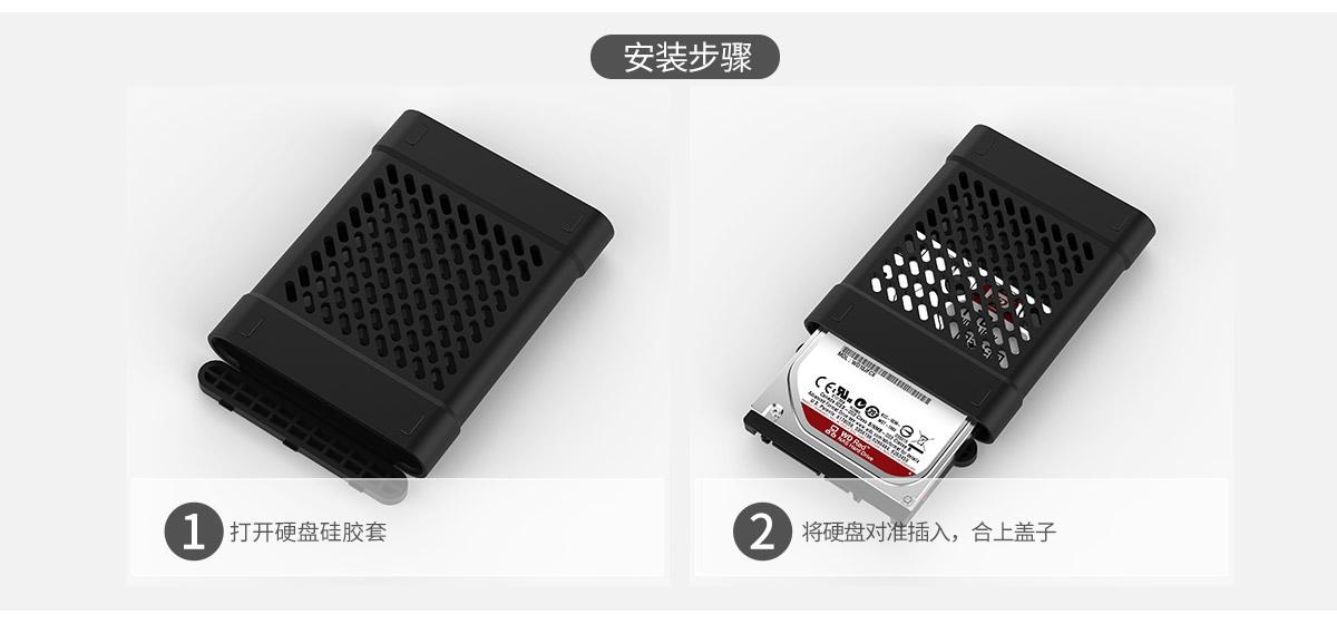 采用高彈力硅膠制作,收縮性好,可兼容12.5mm以下厚度的2.5英寸硬盤(pán)。