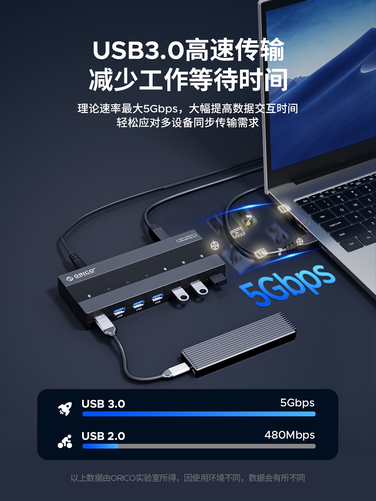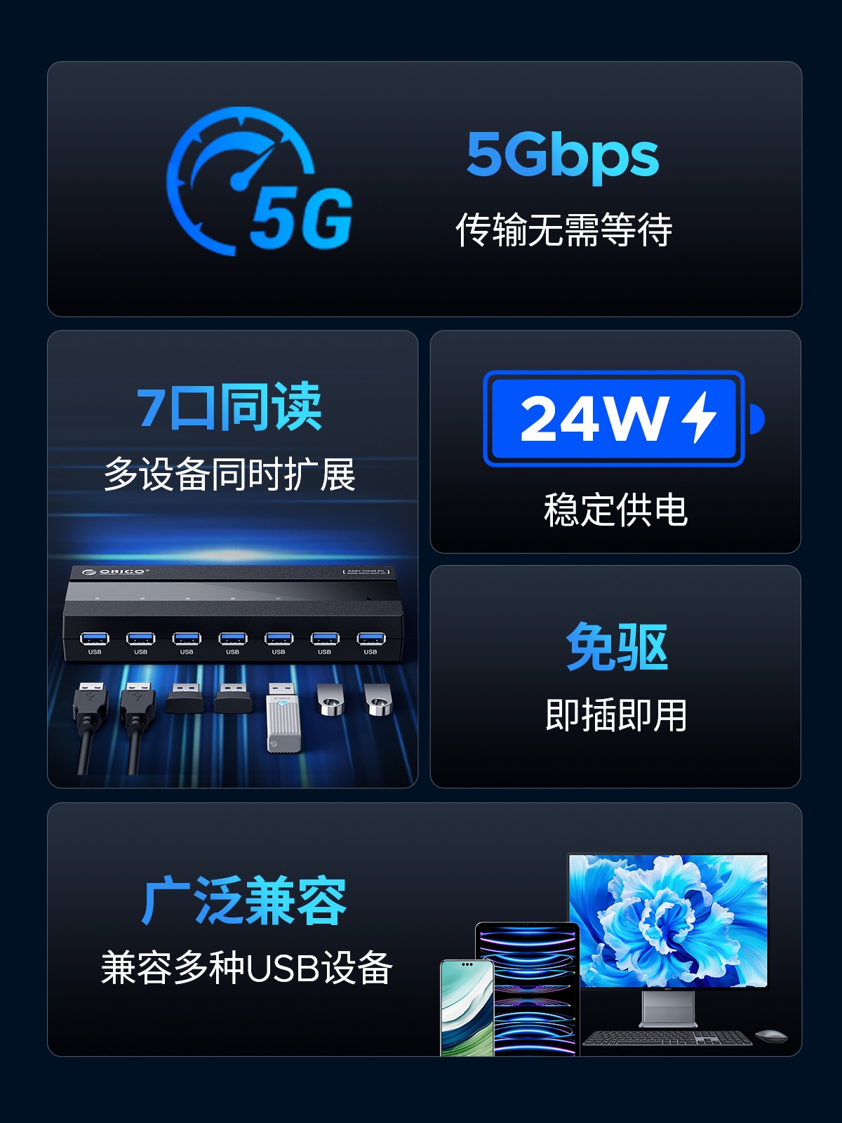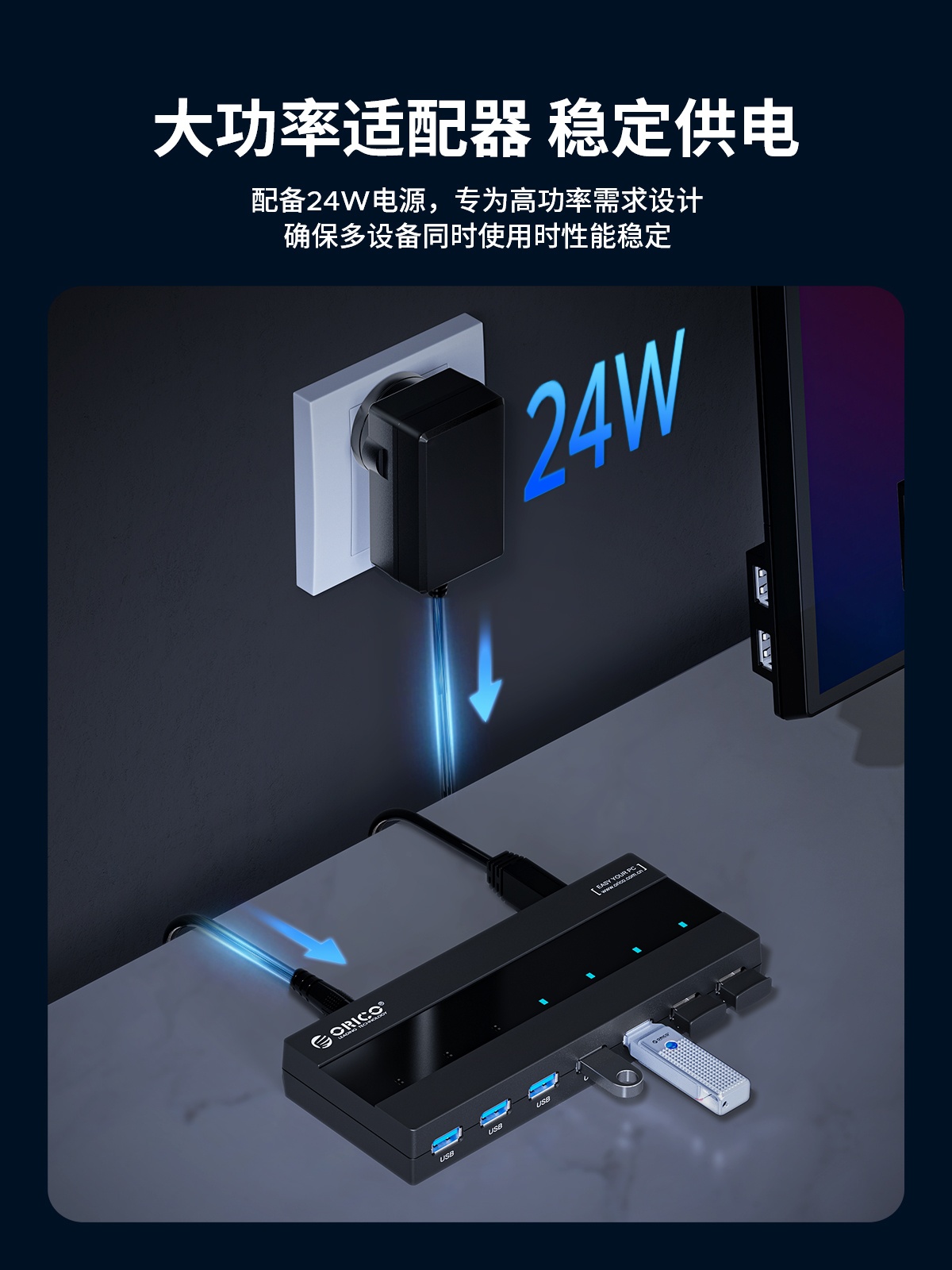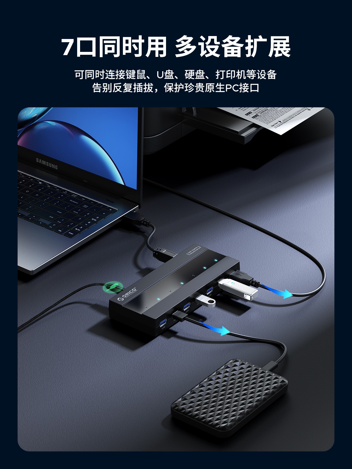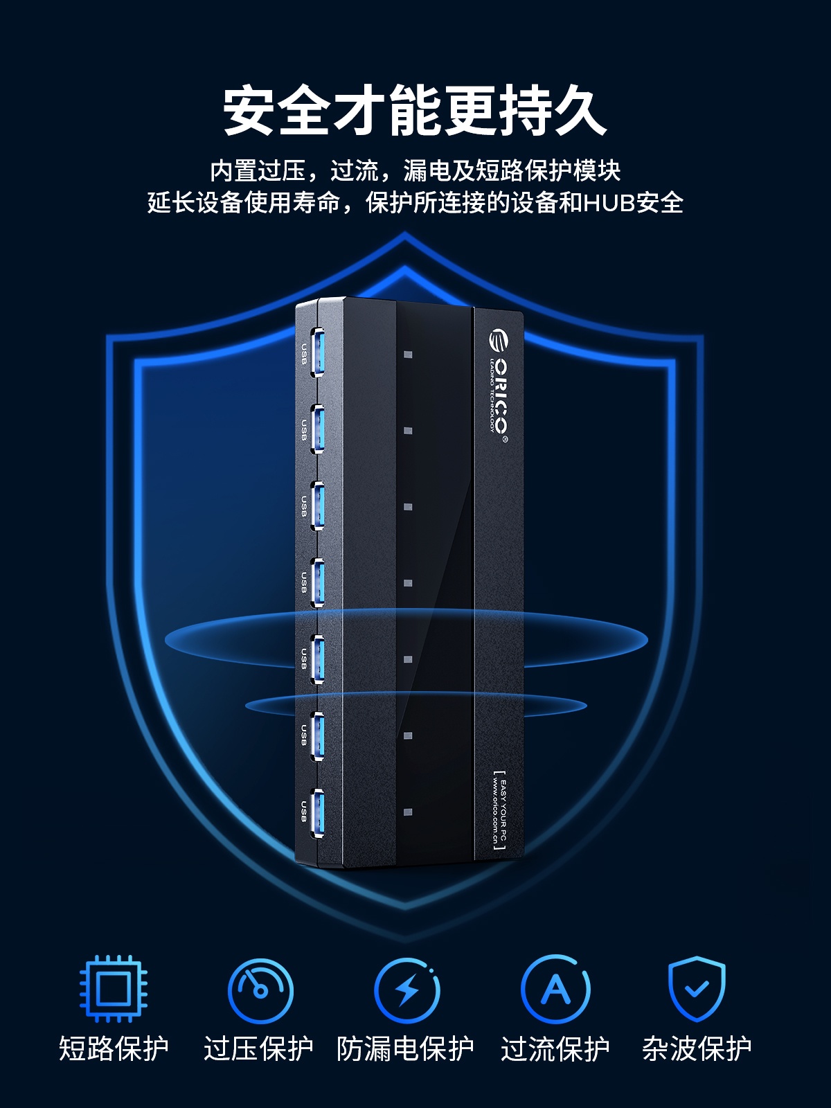 有源多口集線器 LED指示燈 VL812芯片方案 分離式設計 過載保護