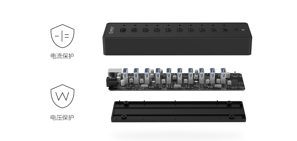 為了給更多USB設備提供高速傳輸條件,ORICO推出10口USB3.0高速集線器,10個USB3.0接口布局合理,運用互不干擾,再多設備也一并滿足,同時也保護了您電腦珍貴的原生接口。