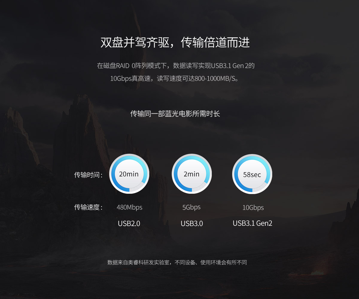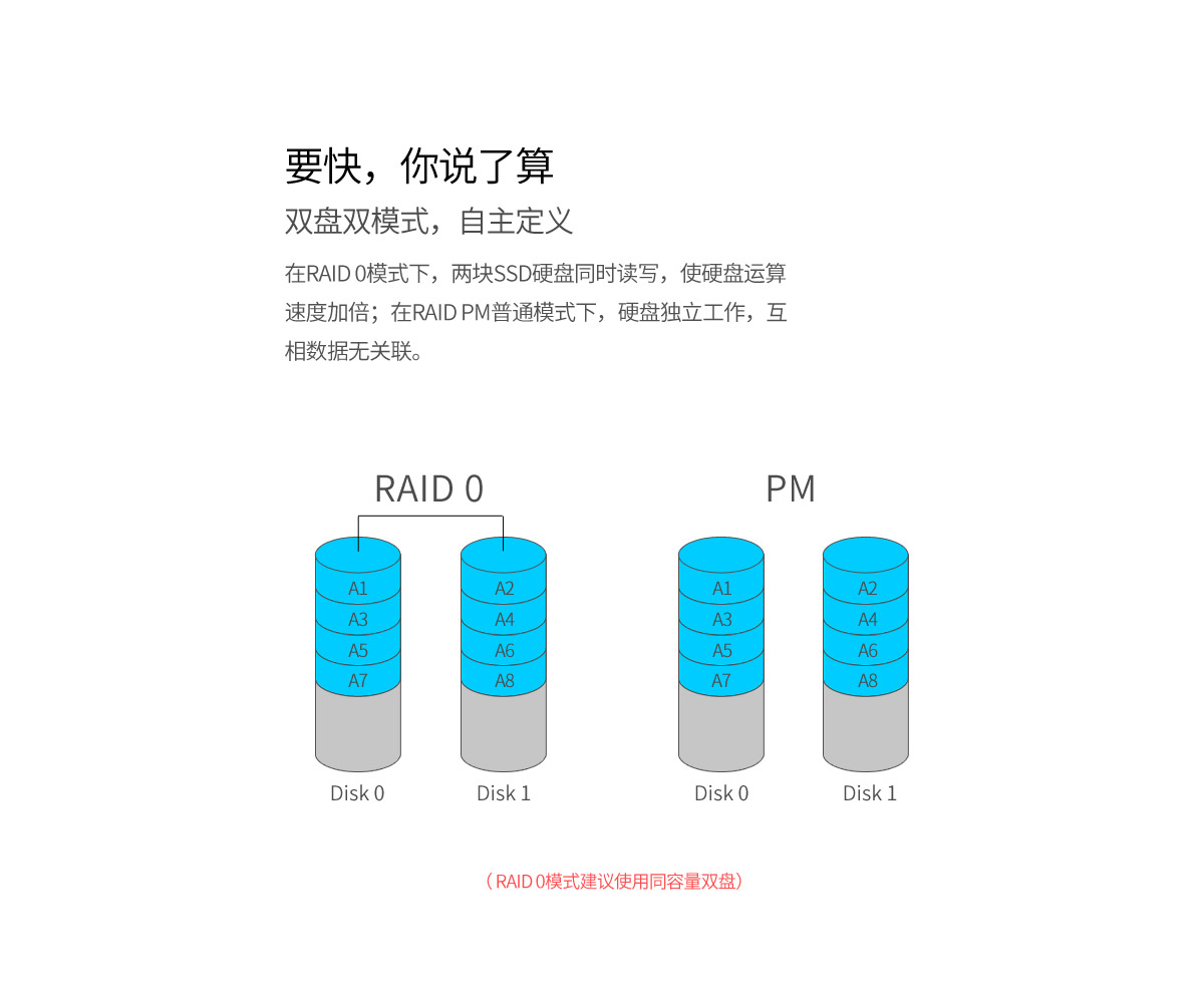 雙盤位雙RAID模式,raid 0模式下,可實現高速讀寫,小巧便攜,Type-C接口