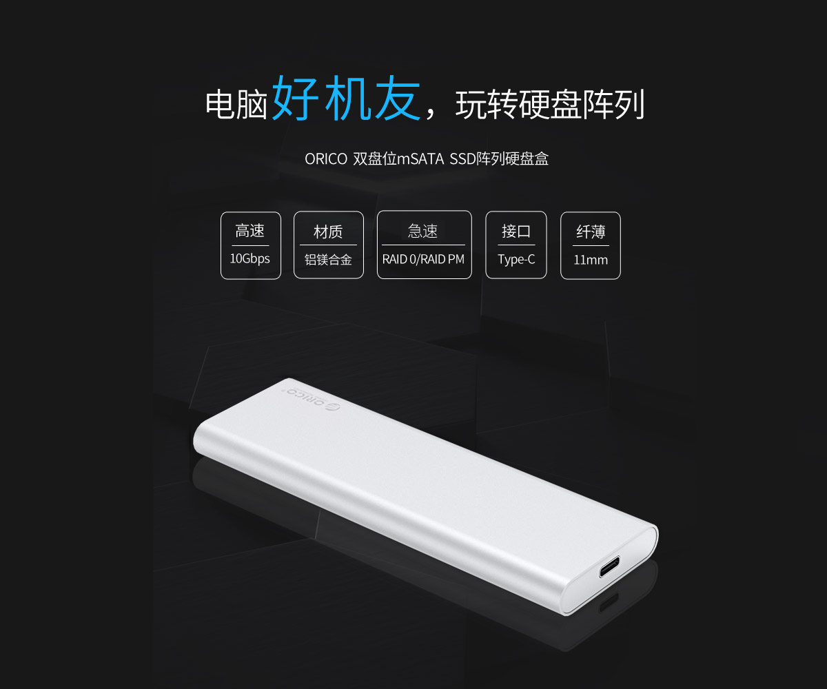 mSATA雙盤位陣列硬盤盒,Type-C接口