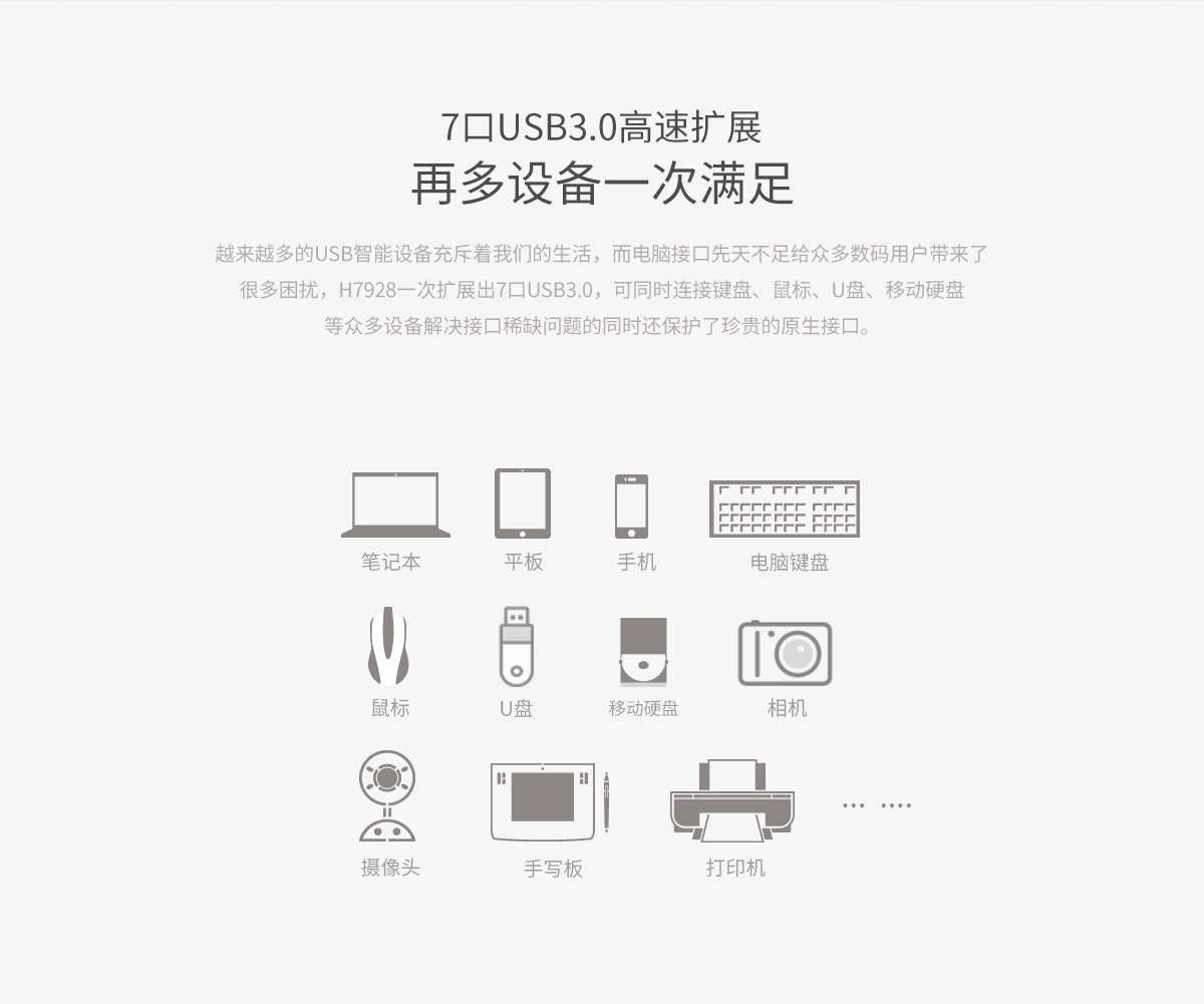 7口USB3.0桌面集線器,12V獨立電源