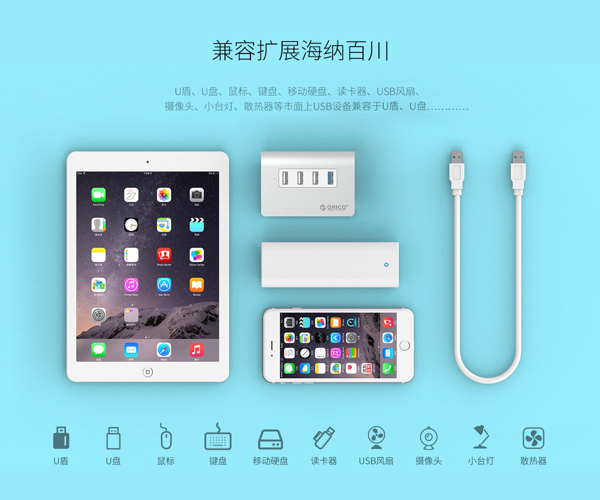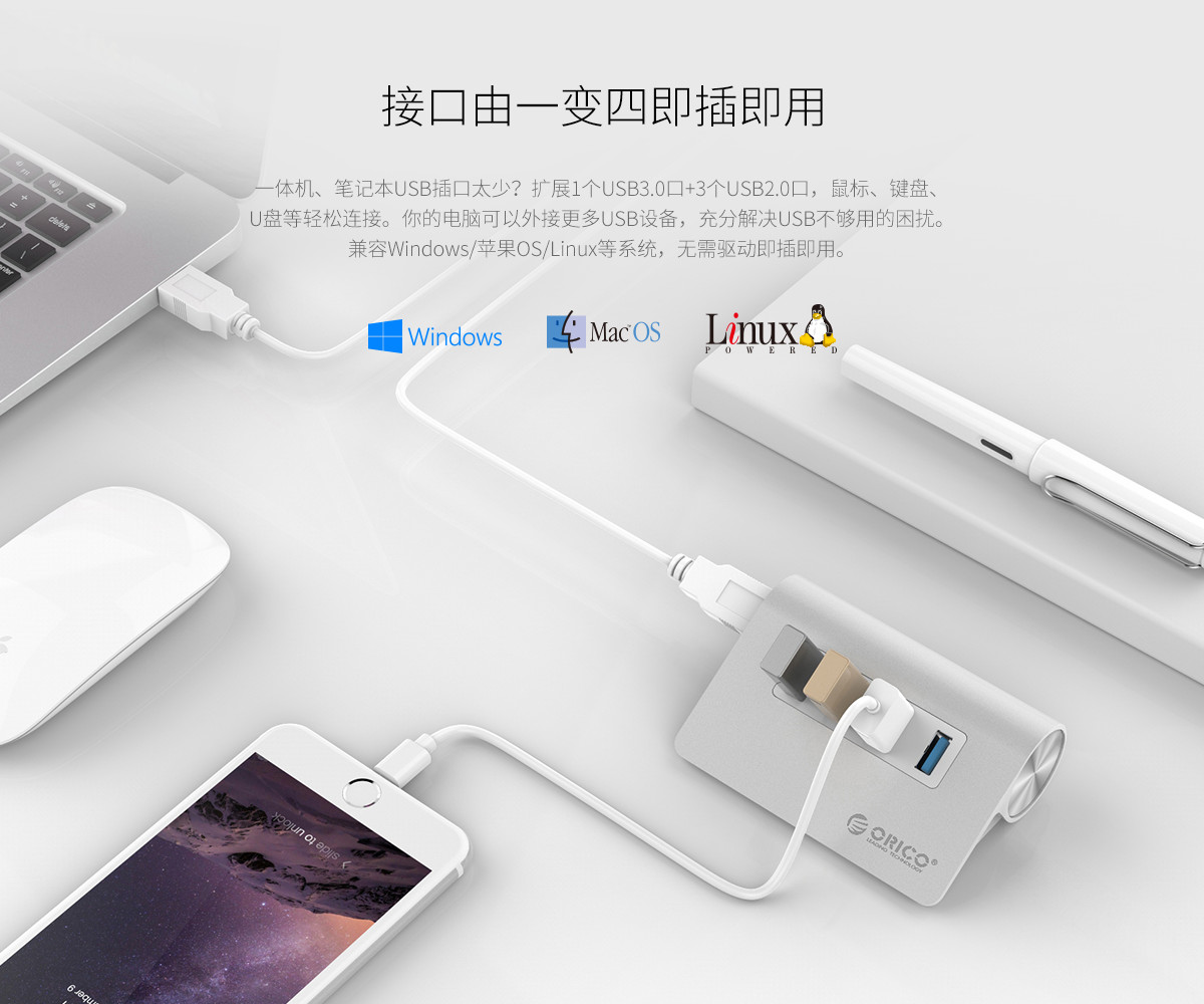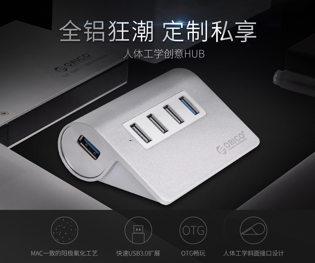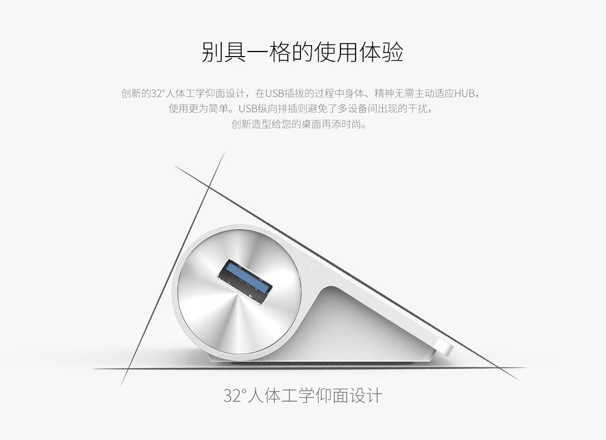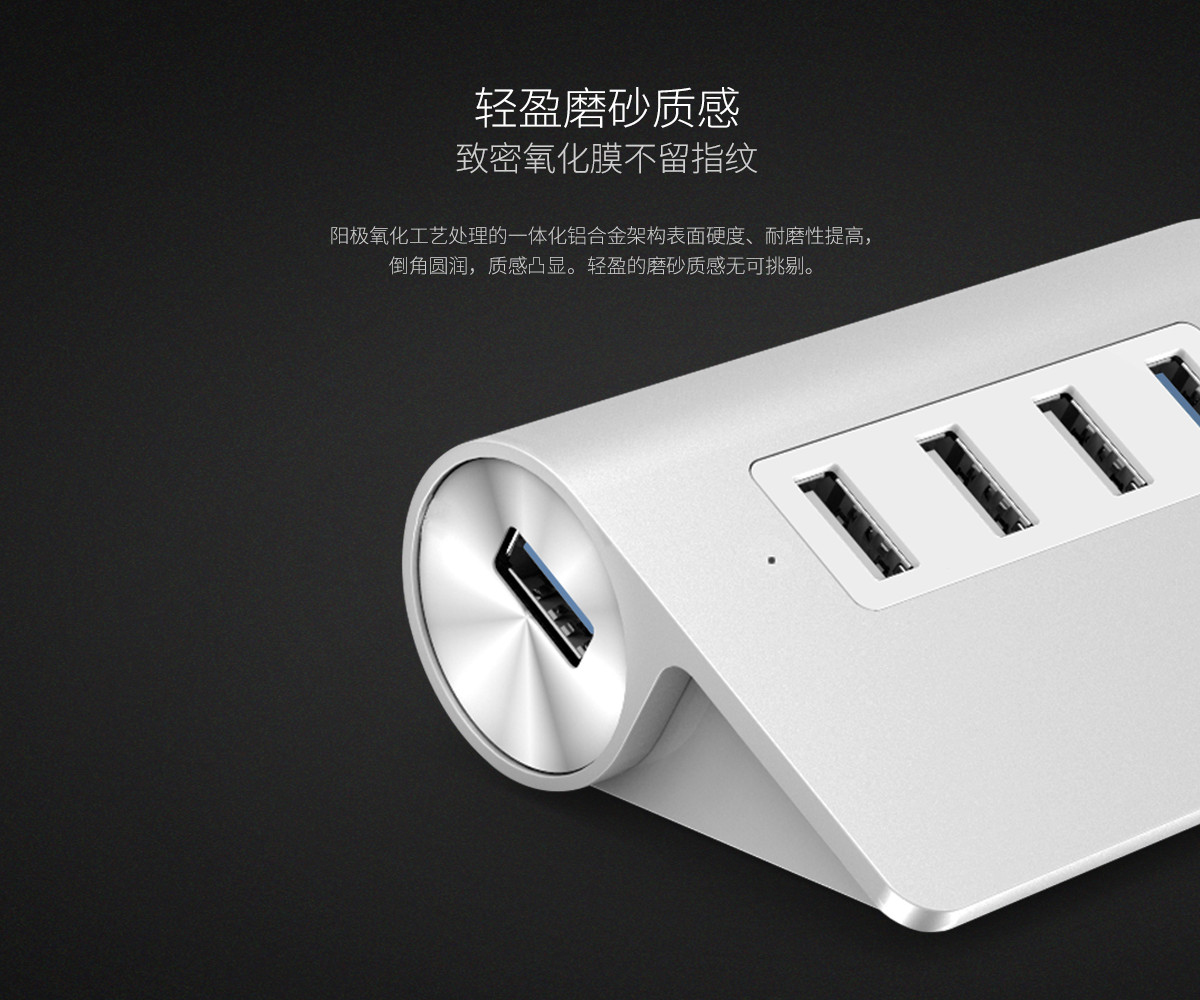 4口USB3.0高速擴(kuò)展 MAC風(fēng)格 人體工學(xué)斜面設(shè)計(jì) 全鋁合金材質(zhì) RTS5411芯片