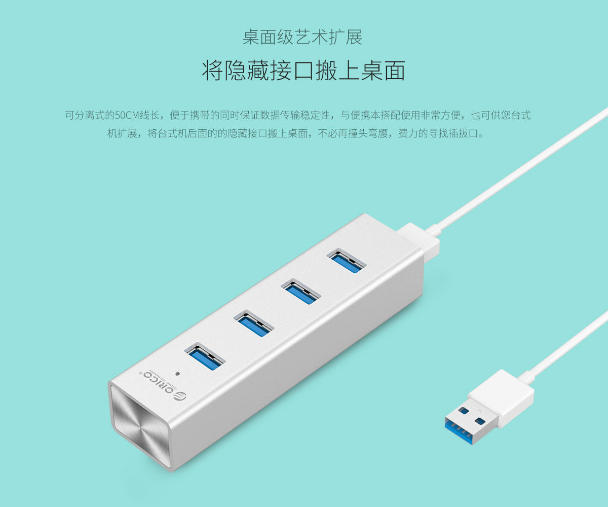 鋁合金4口USB3.0集線(xiàn)器,50cm分離數(shù)據(jù)線(xiàn)