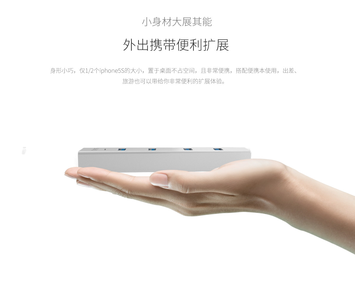 4口USB3.0擴(kuò)展 分離式設(shè)計(jì) 藍(lán)色LED指示燈 鋁合金打造