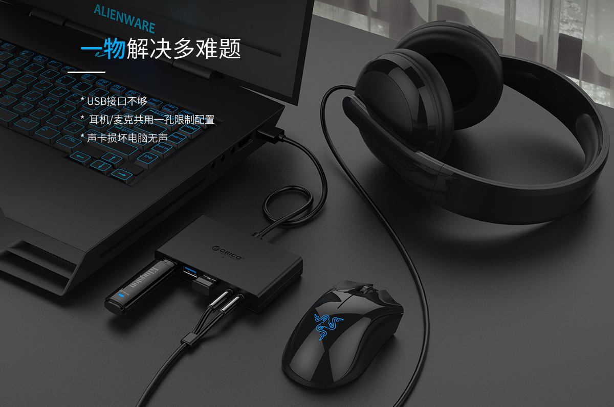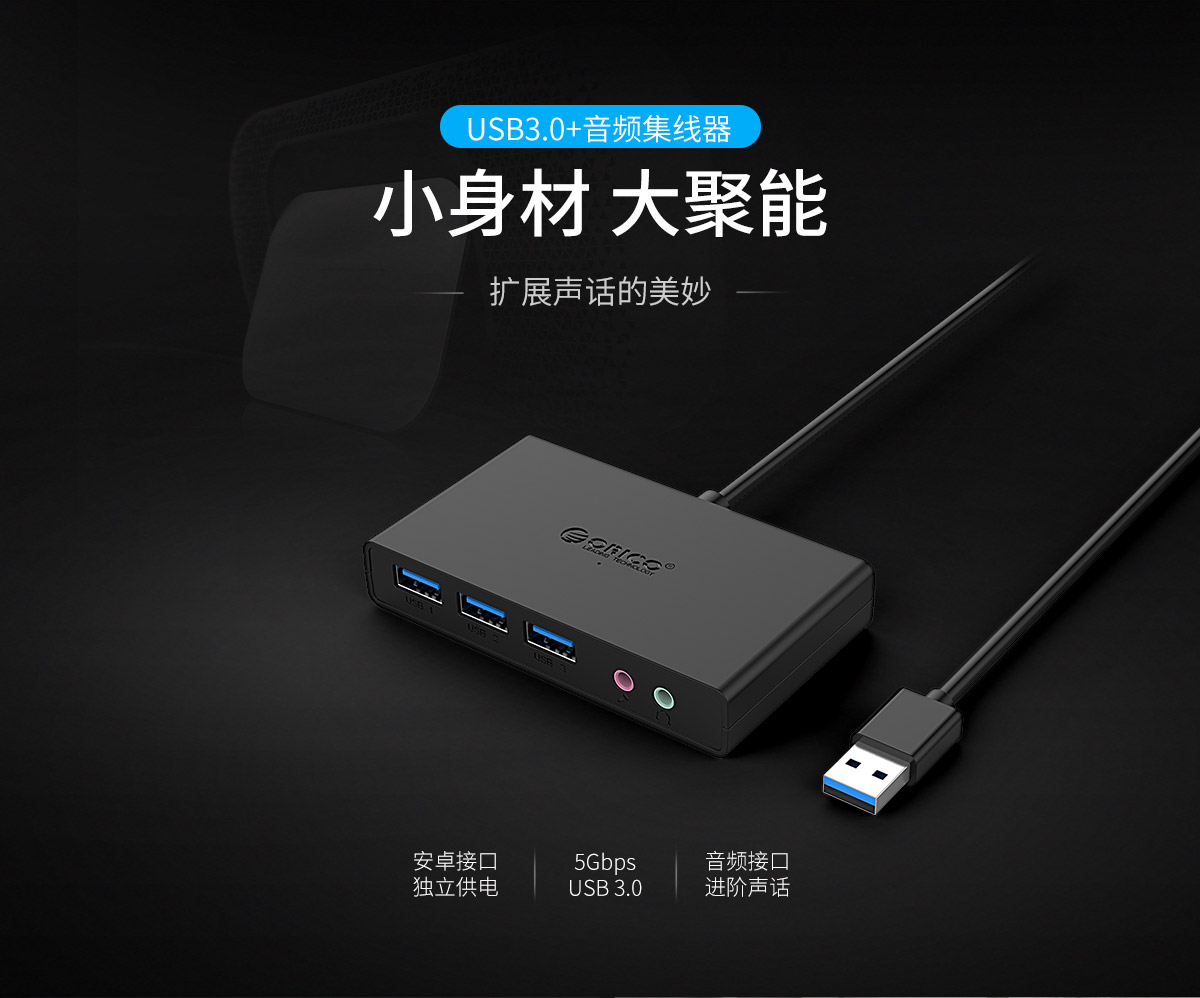 3口USB3.0擴展 連體設計 帶音頻和麥克風接口 多種可選線長