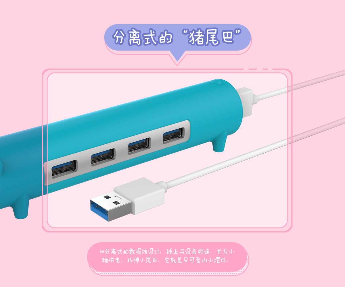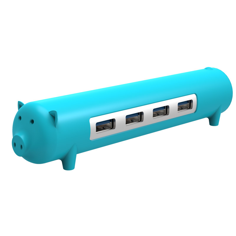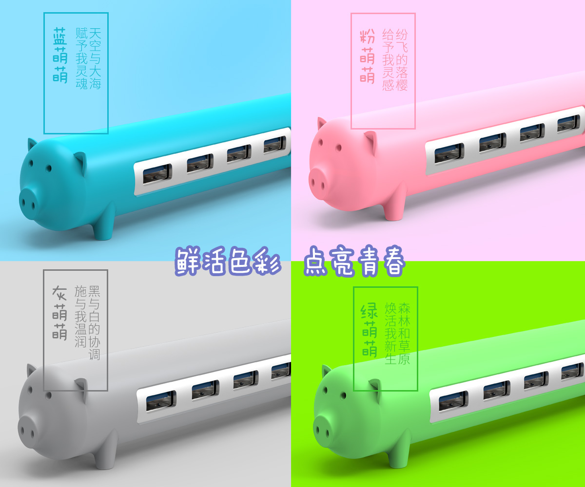 鋁合金打造 防滑硅膠外殼 多色可選 小豬萌寵造型 4口USB集線器